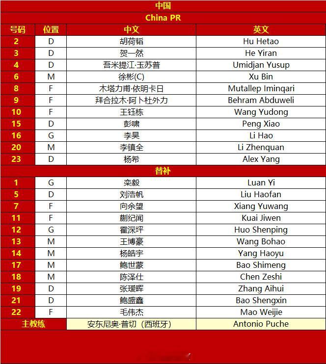 u23国足vs乌兹别克斯坦u23首发名单胡荷韬 贺一然 吾米提江.玉苏普 徐彬(C) 木塔力甫.依明卡日 拜合拉木.阿卜杜外力 王钰栋 彭啸 李吴 李镇全 杨希u23亚洲杯 图片见水印