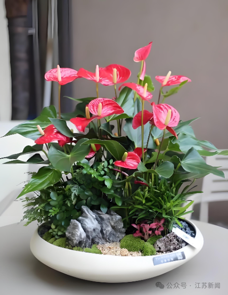 红掌是经典年宵花,价格从20元到50元不等。花型独特,大红色花朵如火焰,寓意事业红红火火,花期超长。
