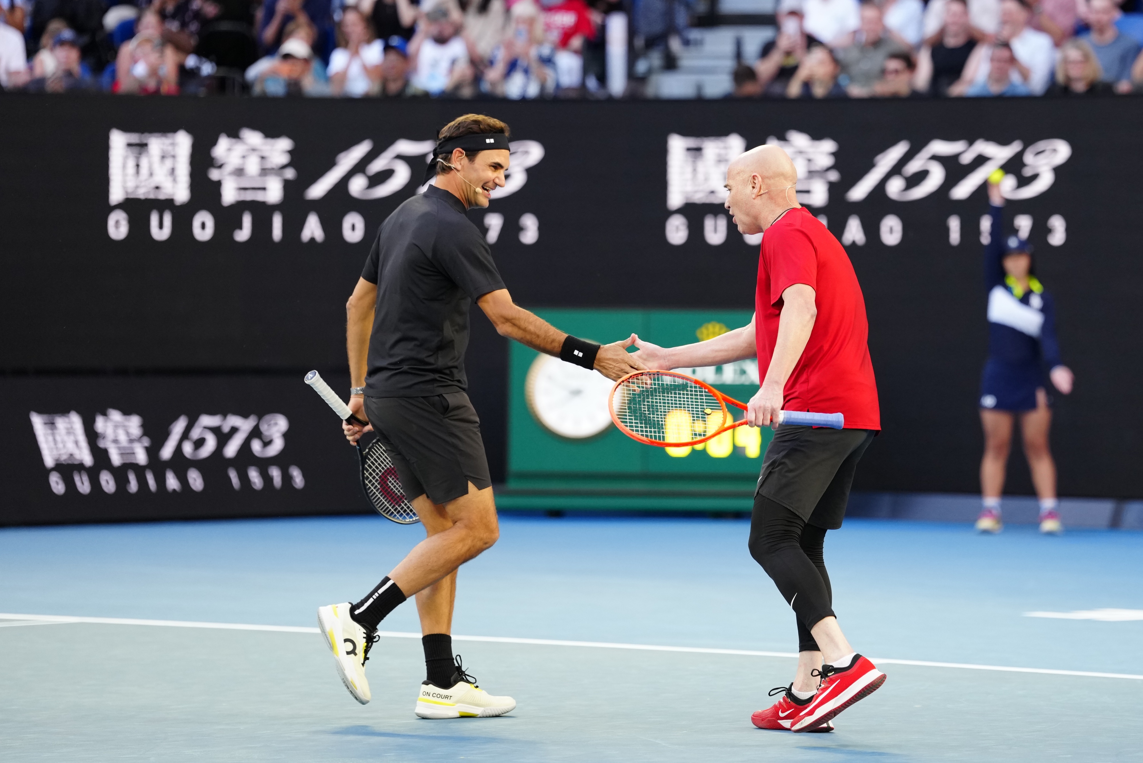 费德勒出席澳网开幕式 费德勒!休伊特!阿加西!拉夫特!澳网开幕式的神仙表演赛阵容,什么时候能把纳达尔也拉过来呀,墨尔本公园、全英俱乐部和法拉盛也都需要豆子的正式告别呢澳网2026