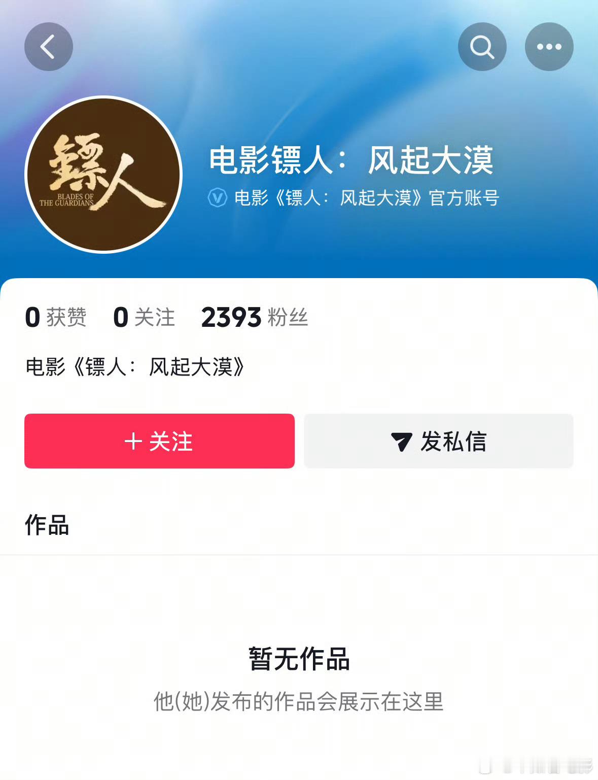 电影《镖人:风起大漠》官方微博和官方抖音账号均已开通,很快定档,春节见!电影镖人官方微博开通