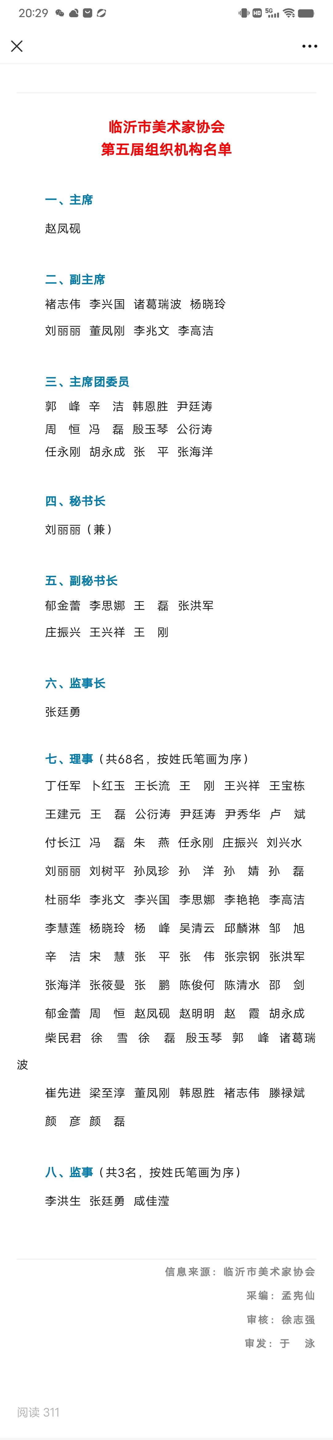 喜欢研究字画收藏圈的朋友们请关注!最新临沂市美术家协会第五届组织机构名单。欢迎大家留言文明交流!
