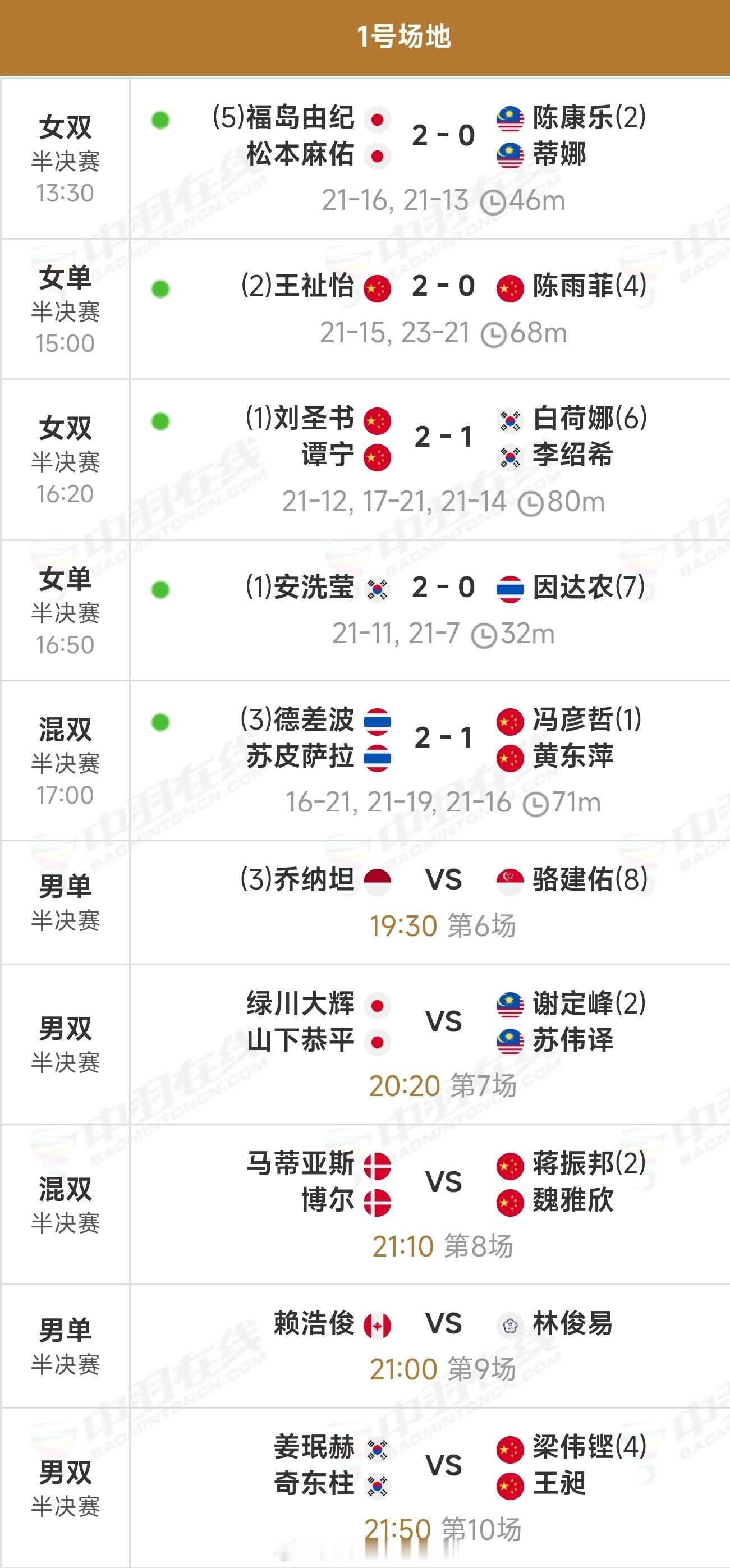 2026年印度羽毛球公开赛今日半决赛赛程过半,实时赛况如下↓图