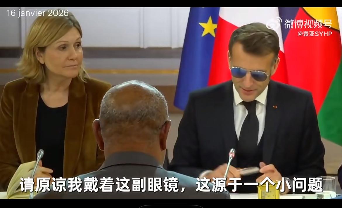 太能装了!马克龙回应右眼充血! 1月16日,马克龙在爱丽舍宫的一场会议上,戴着眼镜解释道:“请各位原谅我戴着这副眼镜,这是因为一个小问题。没办法,我得戴一阵子,还望大家多多包涵。” 总觉得西方人极善作秀,用中国人的话说就是没个正经。马克龙本就是个善变之人,反复无常,不过这副模样倒是与他的气质和风格颇为相符。只是,可千万别把真相说出来,不然又要被人说他怕老婆了!