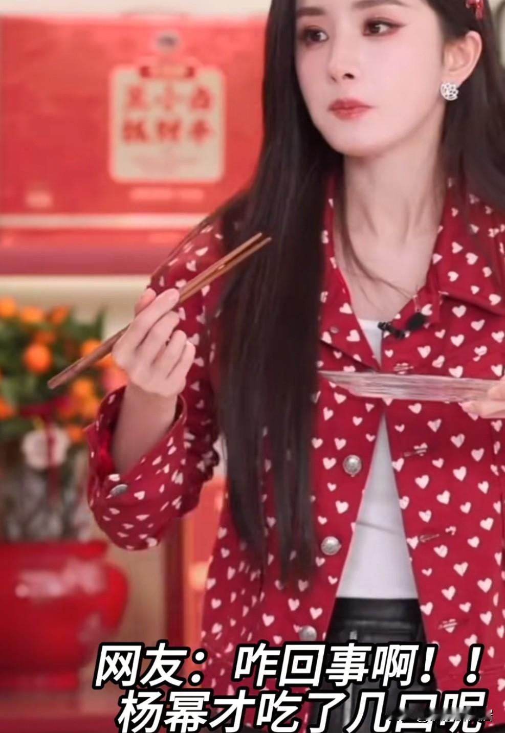 杨幂也不行啊 吃点东西还被工作人员管理 这是管太多还是欺负人 杨幂都快40岁了在直播间就吃那么几口 就被工作人员说少吃点 你说挣了那么多钱 吃不到满足有啥意思 有那么多钱有啥用 现在想想当明星有啥好处吃饭都吃不饱真难受