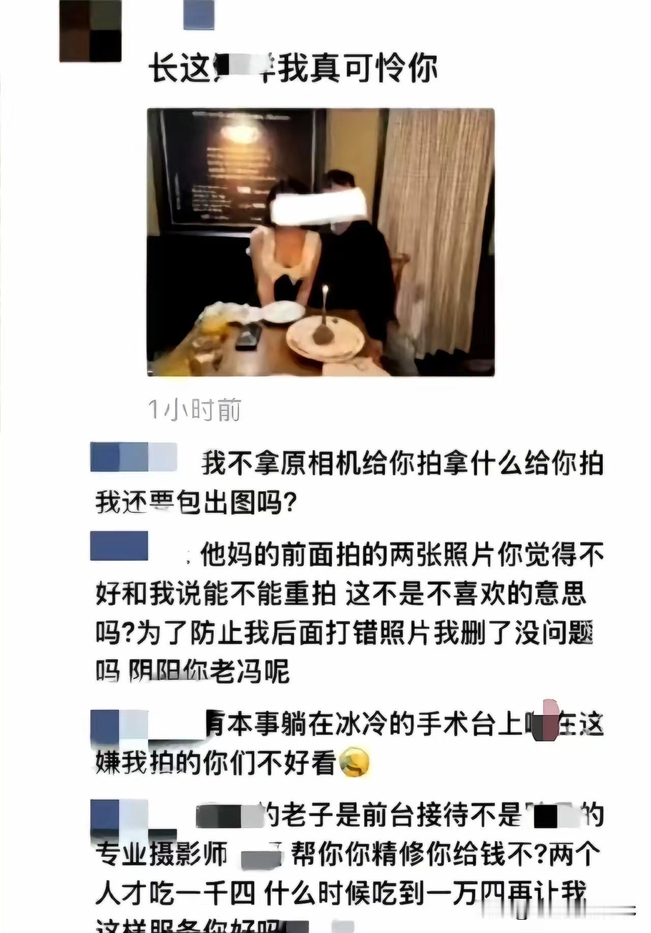 上海这事儿真是把我看笑了。两个人一顿饭干了1400块,只因让帮忙拍个照,转头就被服务员挂朋友圈辱骂,理由居然是“没花够一万四别指望我服务”。 我就纳闷了,这服务员哪来的优越感?天天在富人堆里端盘子,是不是闻久了钱味儿,真产生幻觉觉得自己也是上流社会了?拿着几千块的死工资,去嘲讽一顿饭花掉自己半个月工资的顾客,这脑回路简直绝了。 虽然老板动作快把人开了,但这事儿透着一股子扭曲。这就是典型的“身在底层,心在云端”。 以后去那些装修得亮堂堂的地方消费,真得留个心眼。你以为人家在对你职业假笑,其实心里指不定在骂你“穷还要装”。这年头,花钱还得看服务员脸色,也是没谁了。