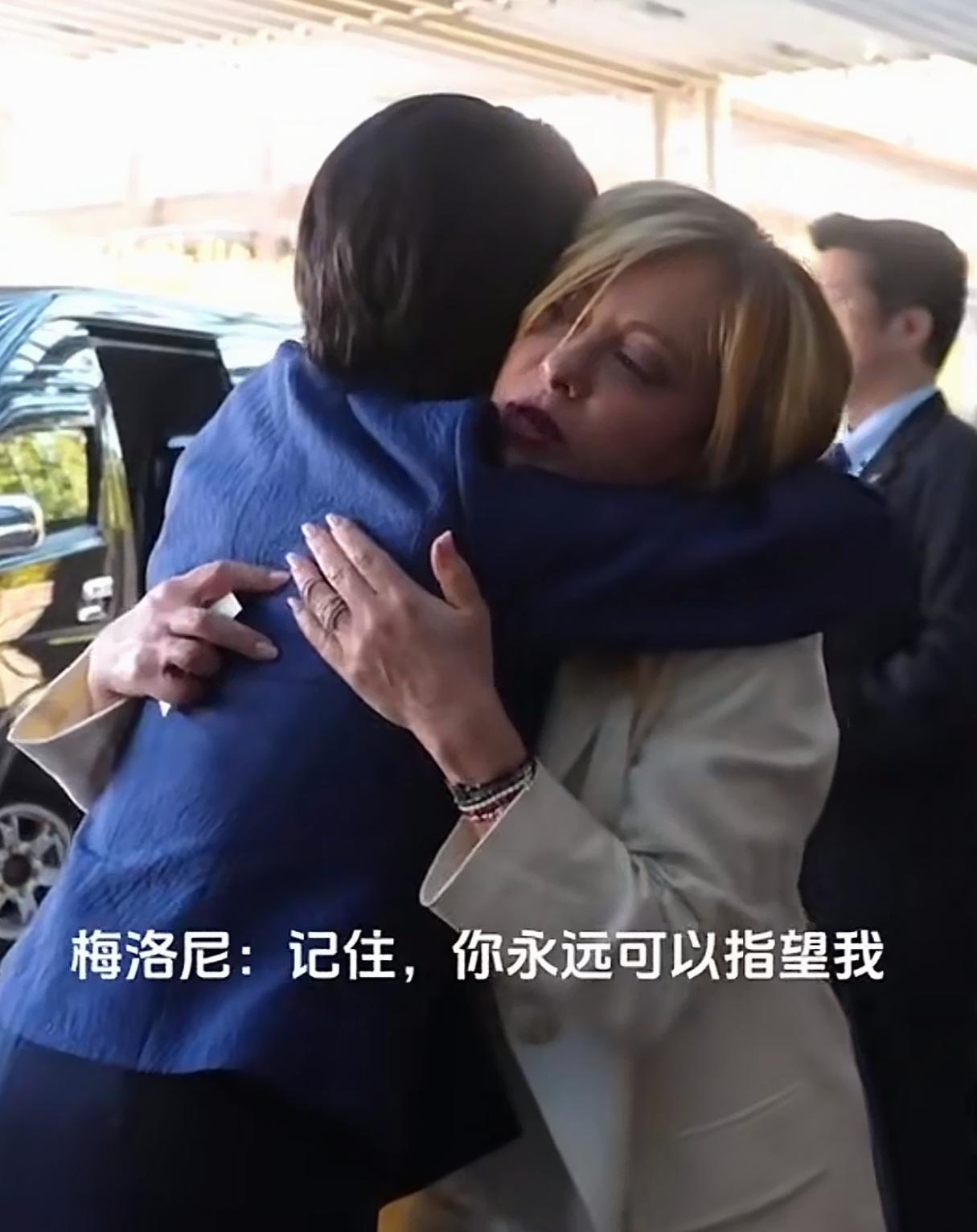 梅洛尼说完这句话后,高市早苗像一个委屈的女人一样趴在了她肩膀上 意大利总理梅洛尼