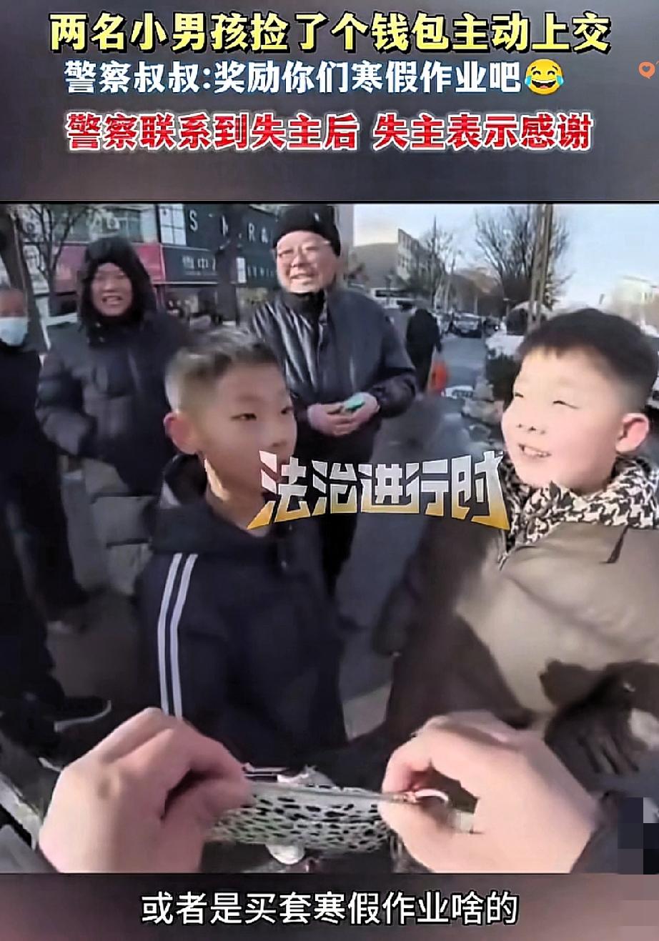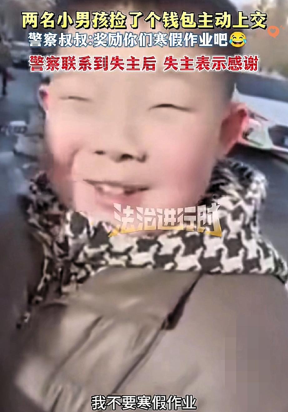 😂警察叔叔的“致命奖励”,把小学生整破防了 谁能想到,两个拾金不昧的小学生,上交钱包后竟被警察叔叔“奖励”寒假作业? 小胖墩当场摆手喊“我不要”的样子,简直是所有学生的真实写照。 这事儿好笑的点在于,大人眼中的“正向激励”,在孩子世界里却是“甜蜜的惩罚”。 我们总习惯用成人逻辑去定义“奖励”,却忘了真正的认可,从来不是用作业去“考验”善意。 比起一本练习册,一句真诚的表扬、一张小小的奖状,或许才是对孩子品德最好的回应。 毕竟,善良的种子不需要用作业来浇灌,用理解和尊重去呵护,才能让它长得更茁壮。 你小时候遇到过什么哭笑不得的“奖励”?评论区聊聊吧~