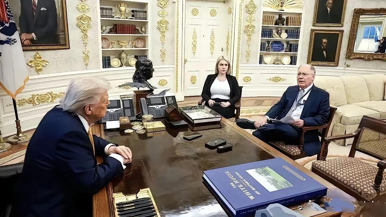 特朗普接受FOX新闻记者采访,白宫发言人卡洛琳在场