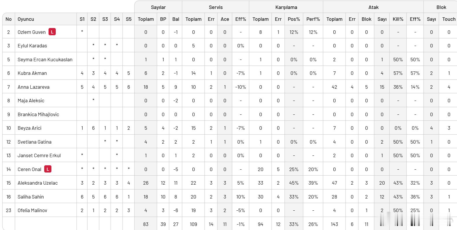 【费内巴切2-3泽仁体育,乌泽拉奇26分】土超新一轮,费内巴切2-3泽仁体育, 22-25 , 25-21 , 23-25 , 25-22 , 14-16;乌泽拉奇26分(47扣20中,2失误3被拦,3拦3发,3发球失误,一传到位45%,39%完美)世界女排新闻 跑娃28分瓦尔加斯28分安娜10分艾达10分奥罗6分卡拉奇6分泽仁体育拉扎列娃18分S沙欣8分阿克曼6分、贝一扎5分,加蒂娜4分、马里诺夫4分