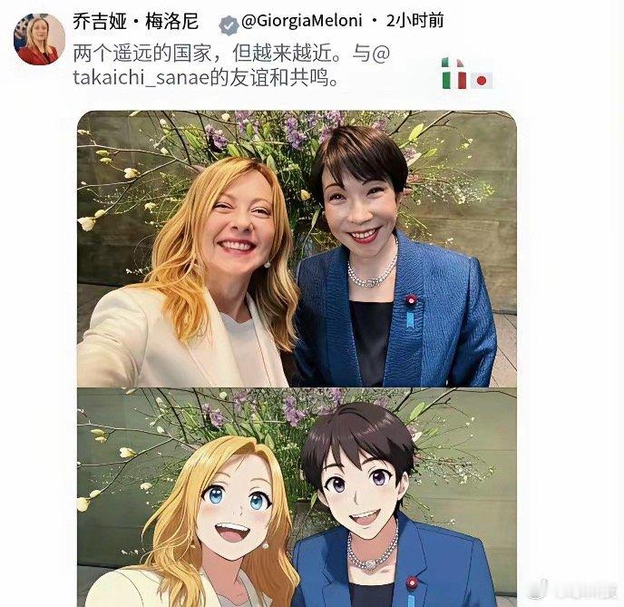 梅洛尼发推文:两个遥远的国家却越来越亲近!网友评价:再加个德国,就重拾二战战犯友谊了