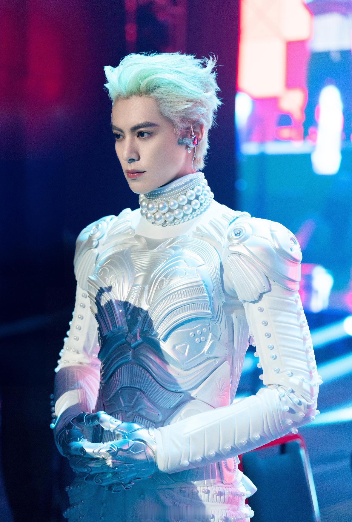 王鹤棣白色机甲造型王鹤棣演唱会粤语打招呼 天神级别的
