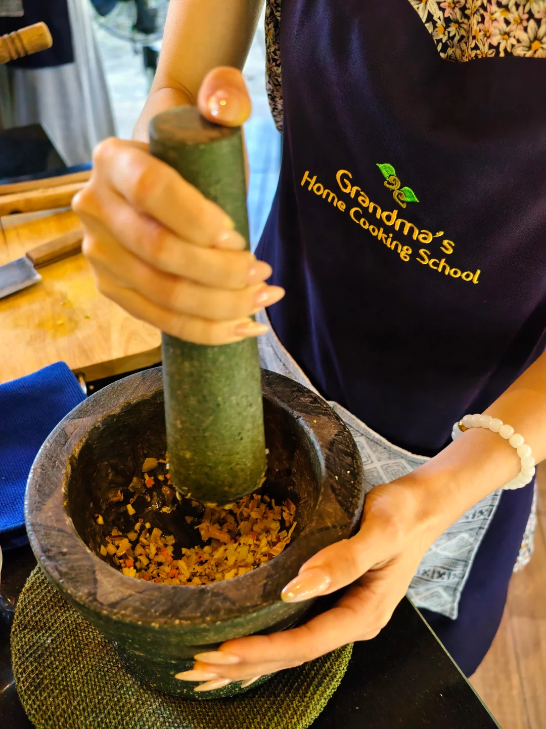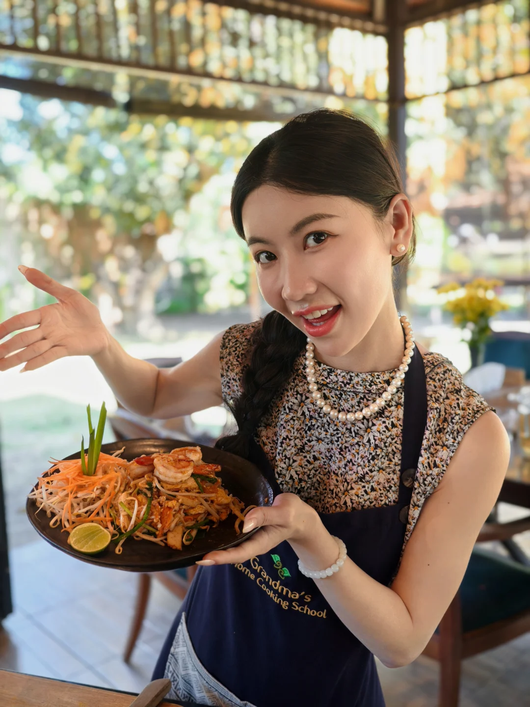 去清迈玩儿,除了在古城里扫街,如果大家想有更多互动体验感,推荐来这家藏在有机农场里的烹饪学校,Grandma’s Home Cooking School ,感受一下那种“跟奶奶一起做菜”的治愈感,呜呜,真的会暖到心坎里! 我把之前做的功课给大家整理了一代,大家可以根据自己的时间和安排选择合适的体验活动 (1)全日课 (09:00-15:45): 7道菜+1饮品,含市场&农场体验。 1,790 THB (2)上午半日 (09:00-13:45): 4道菜+1甜点,含市场&农场体验。 1,190 THB (3)下午半日 (12:00-16:00): 4道菜+1甜点,含市场&农场体验。 1,190 THB (5)傍晚半日 (16:00-19:45): 傍晚场料理体验。 1,390 THB (6)北泰特色课 (09:00-14:30): 6道地道北泰菜。 1,500 THB 🚶(7) 纯参观票: 不动手光吃吃喝喝逛农场。 约600 THB (以上通通包含市区接送、食材、饮料和电子菜谱哦!) ✨ 为什么它是清迈厨艺校的Top级别? 这家 Grandma’s Home Cooking School 是为了纪念 Rabiiab 奶奶而开的,满园子都是爱与热情的味道。咱不只是在厨房里切菜,是真的要去当地市场认香料、去有机农场里亲手掏鸡蛋、采摘新鲜蔬菜!那种归园田居的感觉,真的太chill了~ 🥣 我在当时体验了【下午场】,给大家做参考: 12:15 逛市场: 老师会带我们去了本地的市场,认泰式香料,再也不用担心回国分不清罗勒和九层塔啦! 13:20 看农场: (当时我们当时由于有其他批次的同学迟到,所以没有按时进行,是在我们做完饭之后,才去参观的)换上装备去采摘,农场收拾的很规整和干净,特别适合拍照,每个人都可以戴草帽,还可以和农场的鸡亲密互动! 13:30 沉浸式烹饪: 有4道正餐可以选择两个来做,我当时选择的是泰式炒河粉以及冬阴功汤,1道甜点是饭后免费赠送的!不用担心英文不好听不懂,可以选择中文老师的! 15:45 快乐干饭: 享用自己做的战利品,还有免费的饮料可以赠送,我们那天是泰式奶茶以及柠檬茶可以选择 tips 分享: ✅ 交通: 这个学校在Saraphi区,有点远,但学校包酒店接送(10km内),如果住在市区,基本都是在这个10km范围内的! ✅ 穿搭建议: 建议穿那种深色、好清洗的衣服,做菜过程中难免有些滴溅。因为要去农场还会动手做饭,白衣服弄脏了真的会心疼死! ✅ 语言: 主要是英文授课,如果怕听不懂,记得提前备注中文需求,我当时的老师是中文老师!