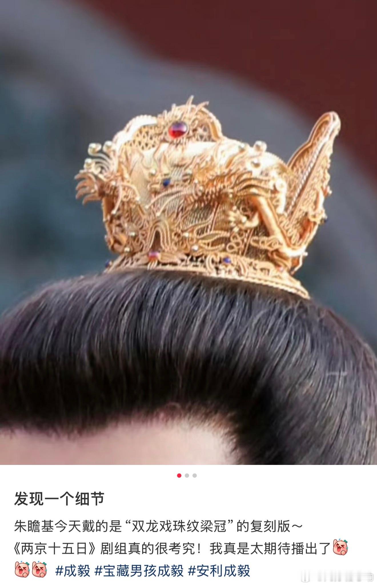 两京十五日剧组很用心做剧朱瞻基今天戴的是“双龙戏珠纹梁冠”复刻版成毅两京十五日 林更新感谢成毅包场