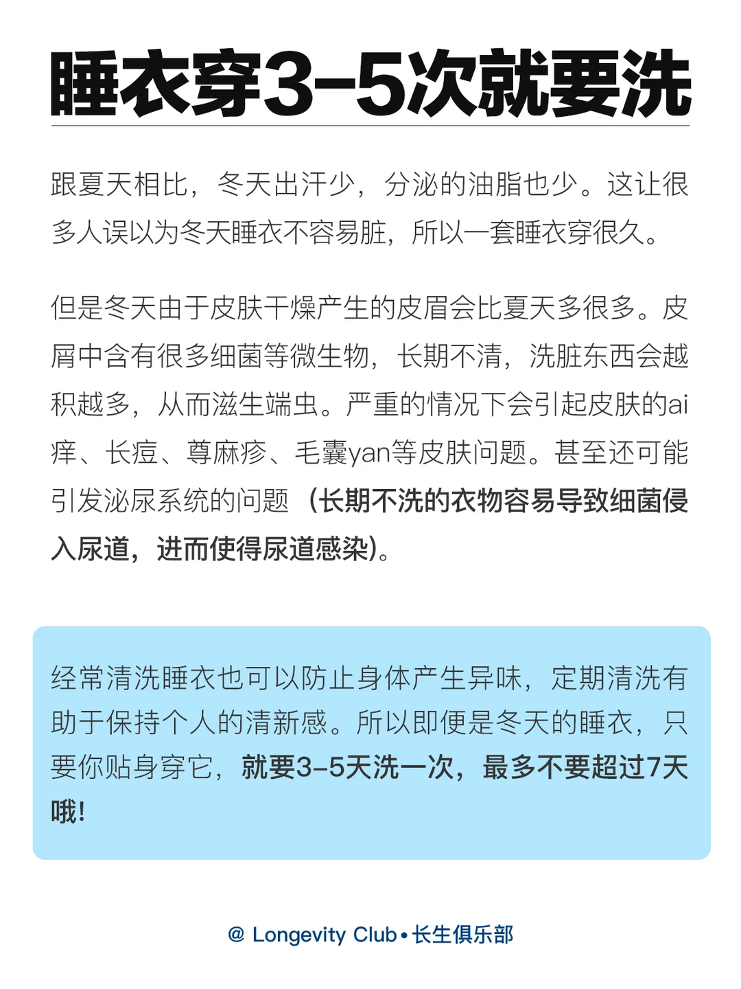 睡衣做为贴身衣服,如果长期不清洗,脏东西会越积越多,从而滋生螨虫。脏脏的! 因此,睡衣每周穿3-5天就该洗洗!让我们都可以香香甜甜,干干净净的进入梦乡~