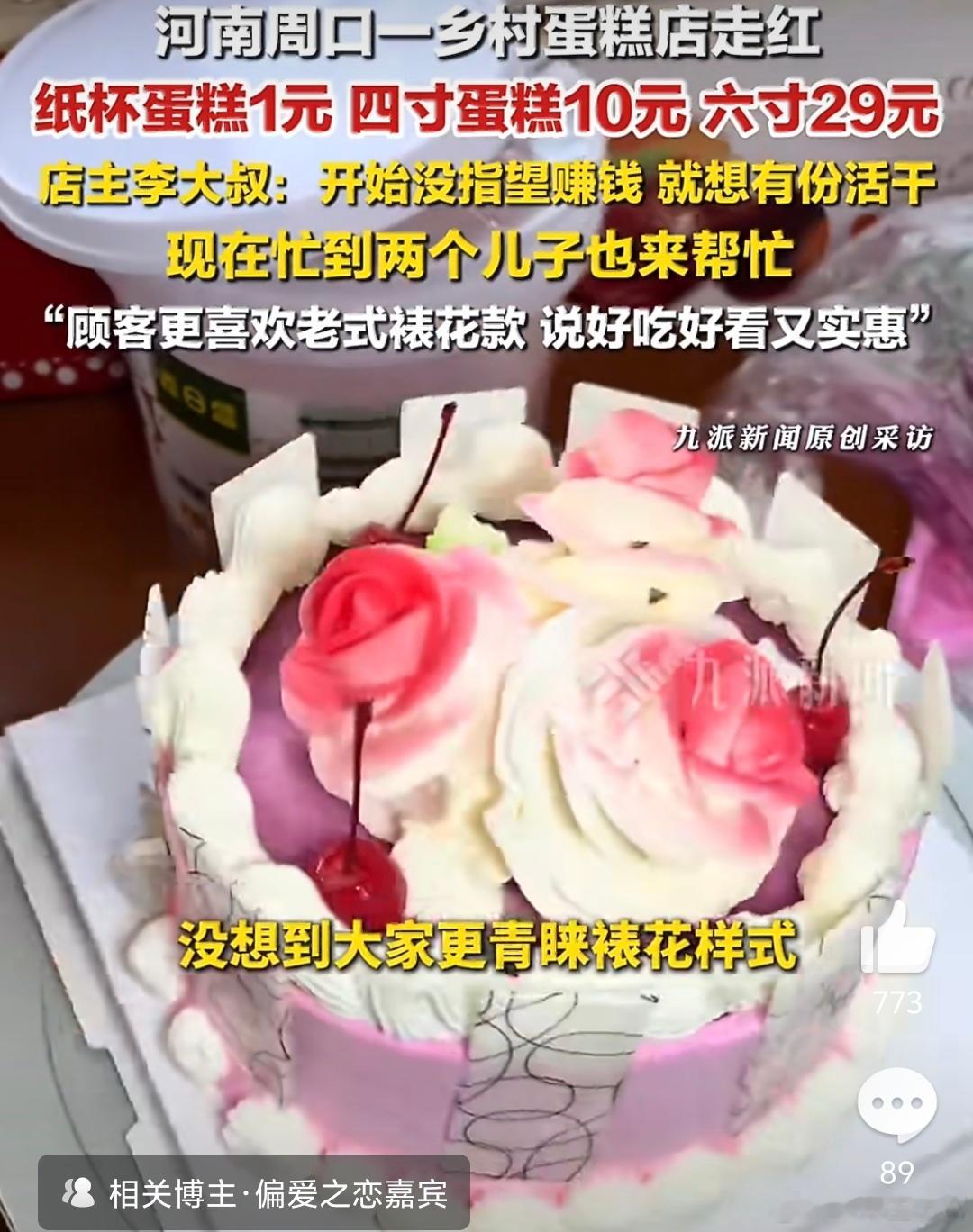乡村蛋糕店4寸卖10元走红对呀,我觉得这才是蛋糕本身应有的价格,再看看那些连锁蛋糕店卖的蛋糕,难吃就不说了,用料也没有感觉多好,全是装饰和花里胡哨,动不动就要大几十上百的,都是被惯坏的,当然这里面肯定也会包含了人工,房租,水电,材料等,可是6寸29块在城里只能买一两个小面包