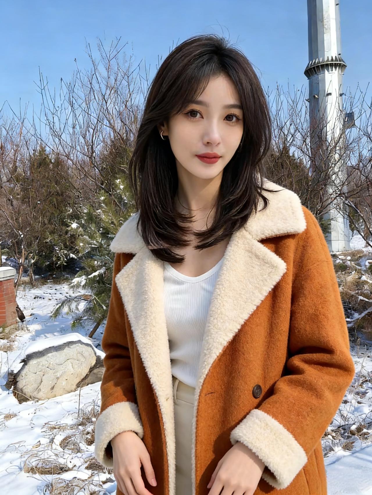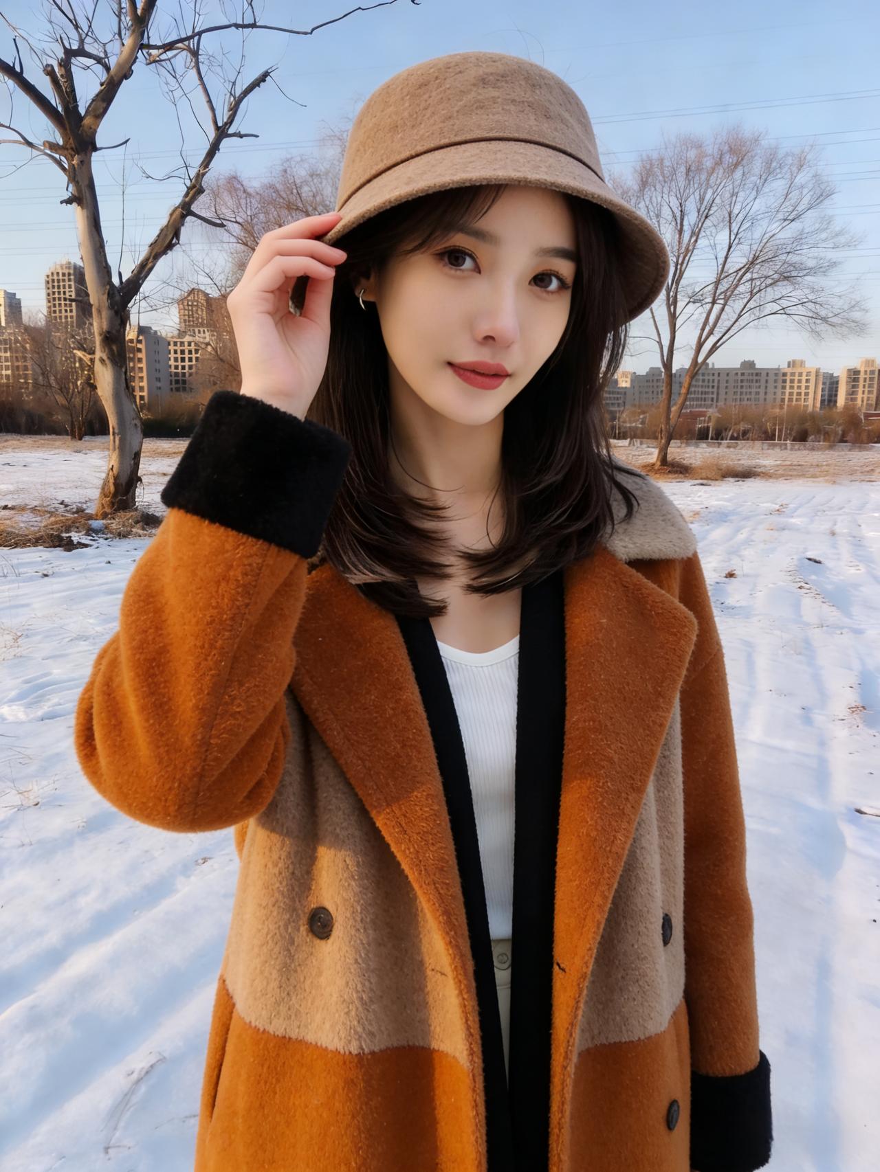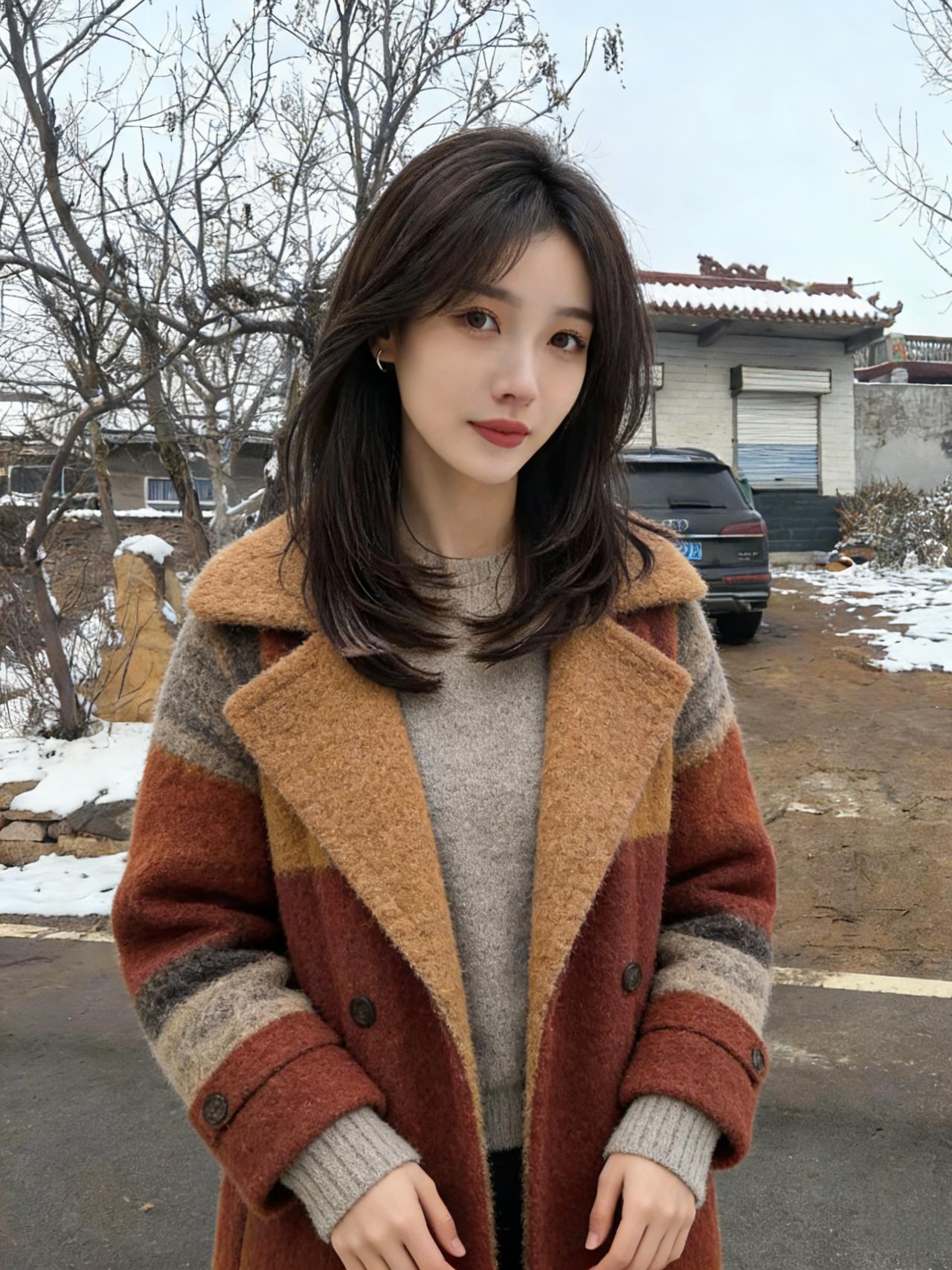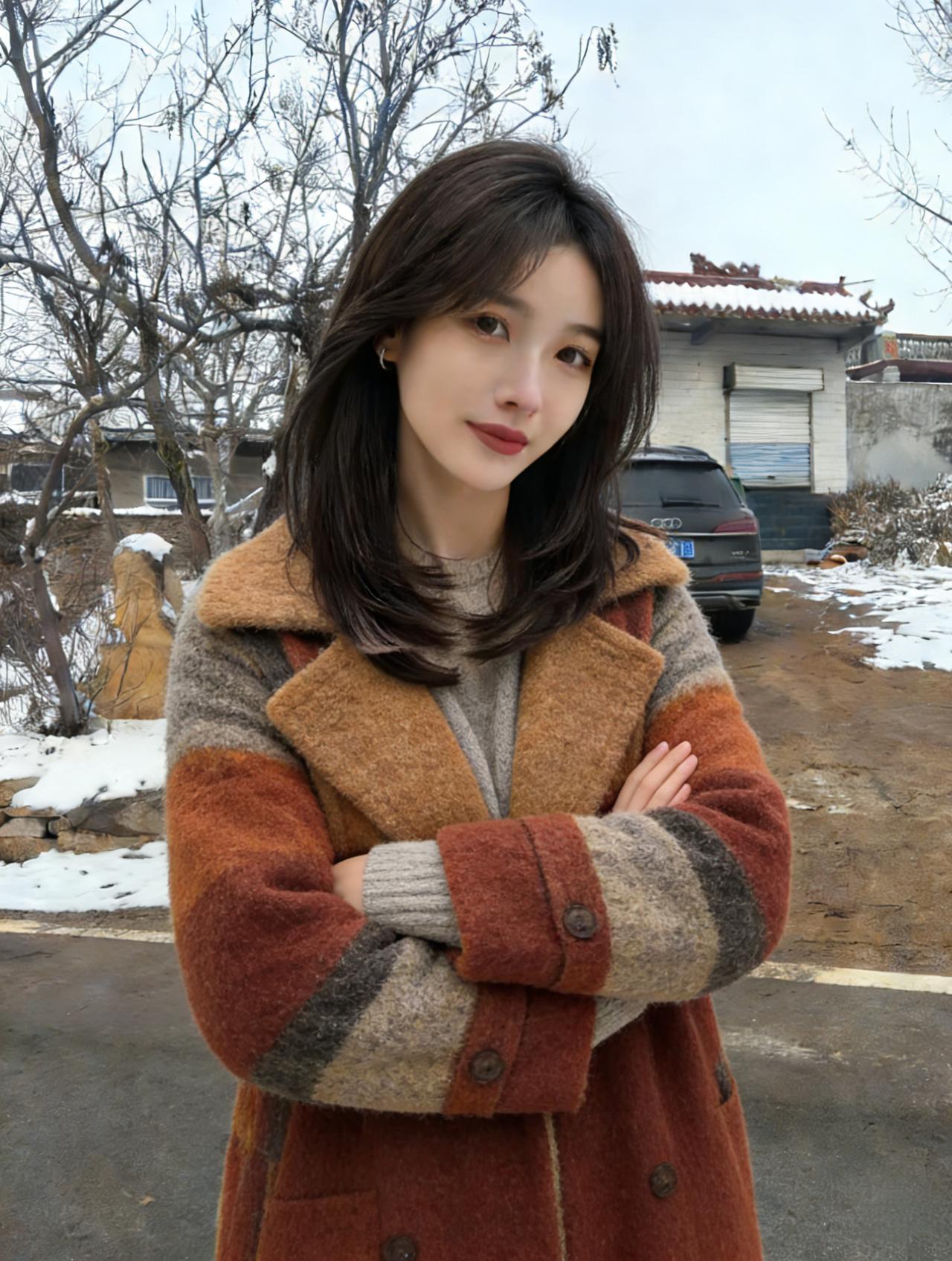 氅衣轻拢三分雪,笑靥深藏一段霜。