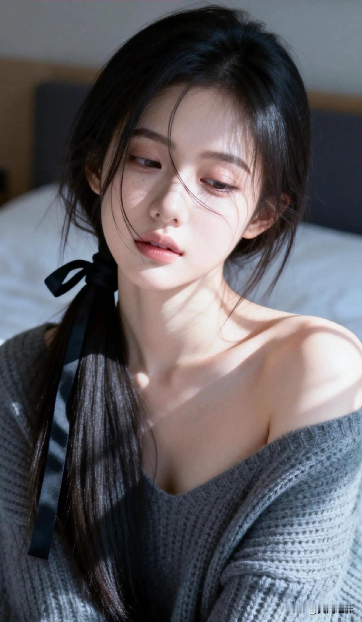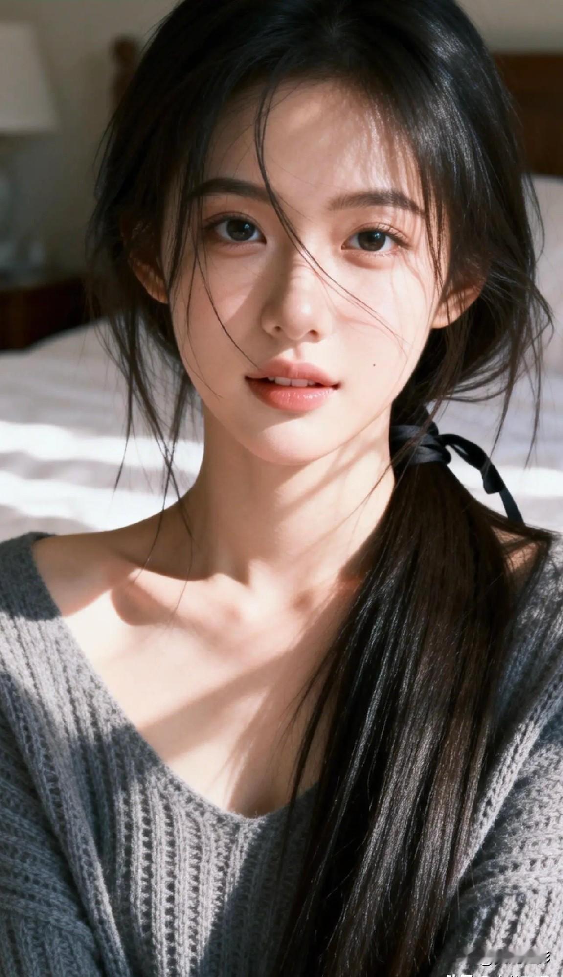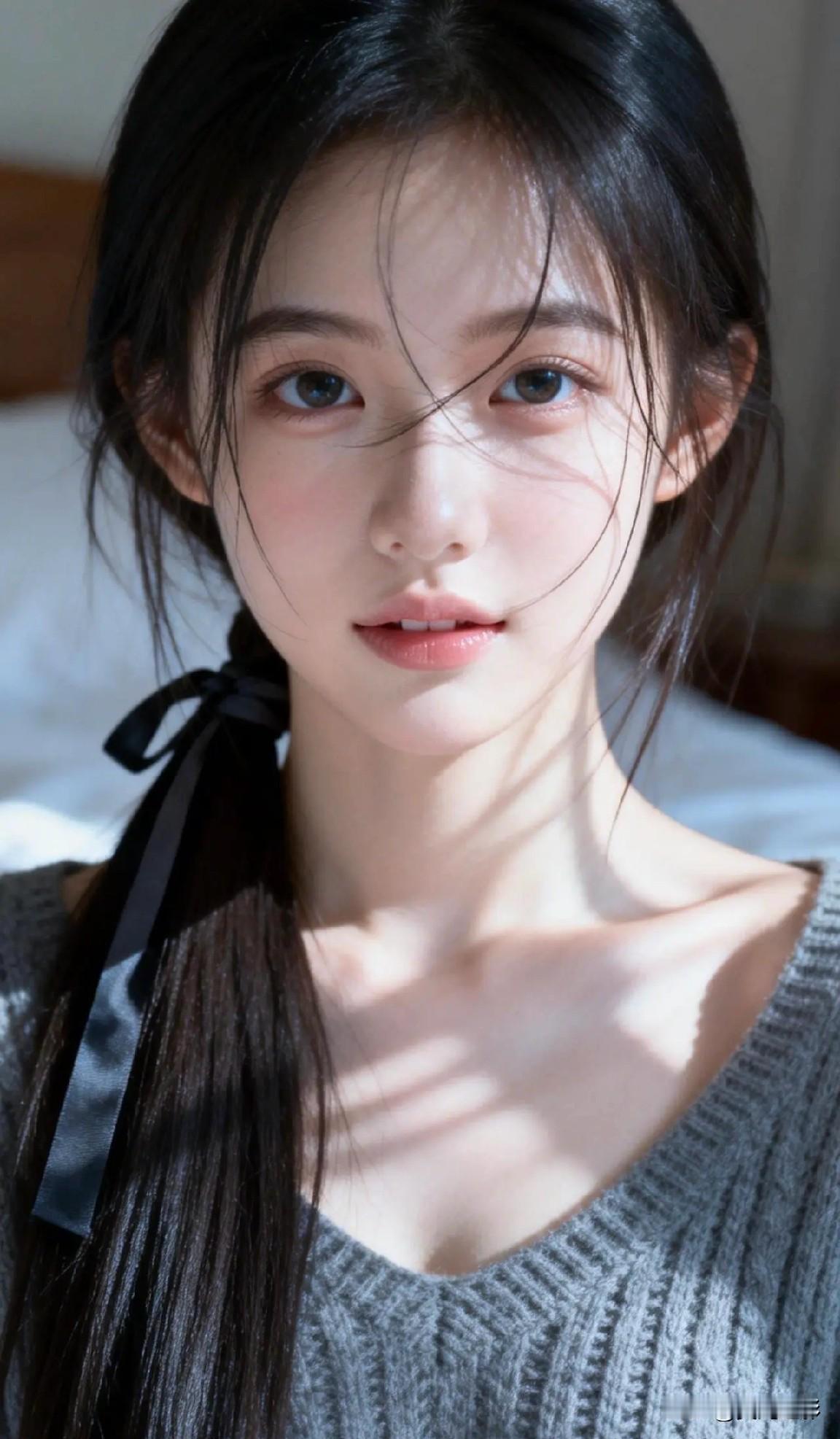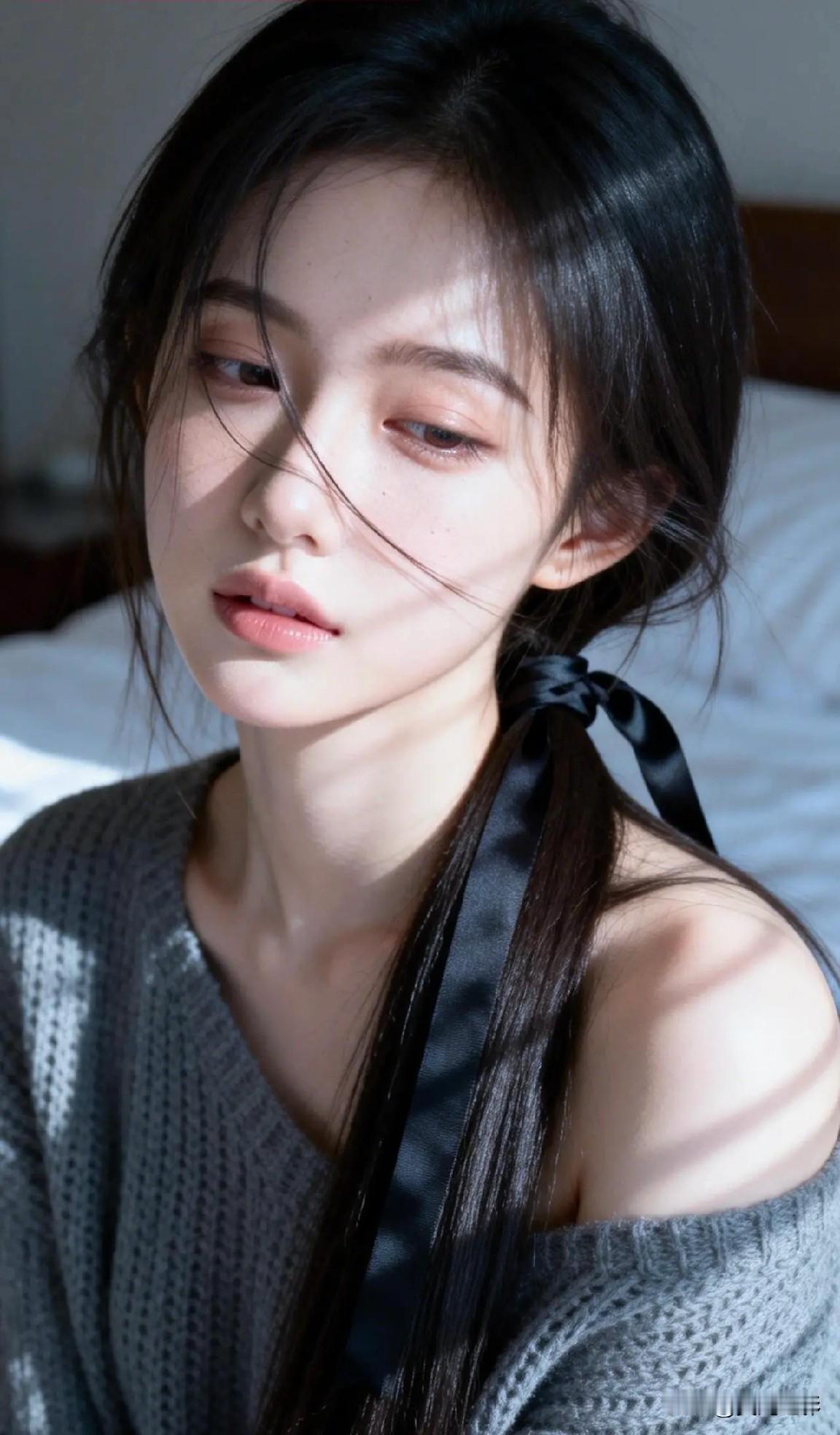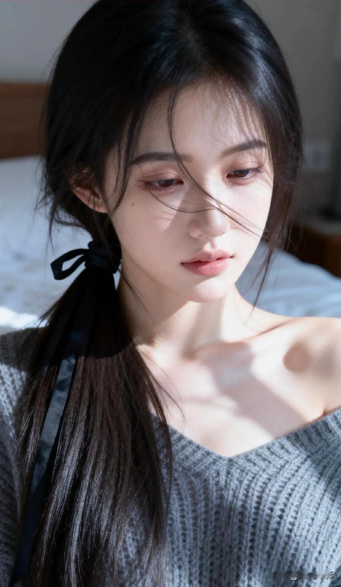 光之影&AI 阳光洒落,少女温柔的侧颜,黑发如瀑,清新自然。 阳光少女照 温婉侧颜