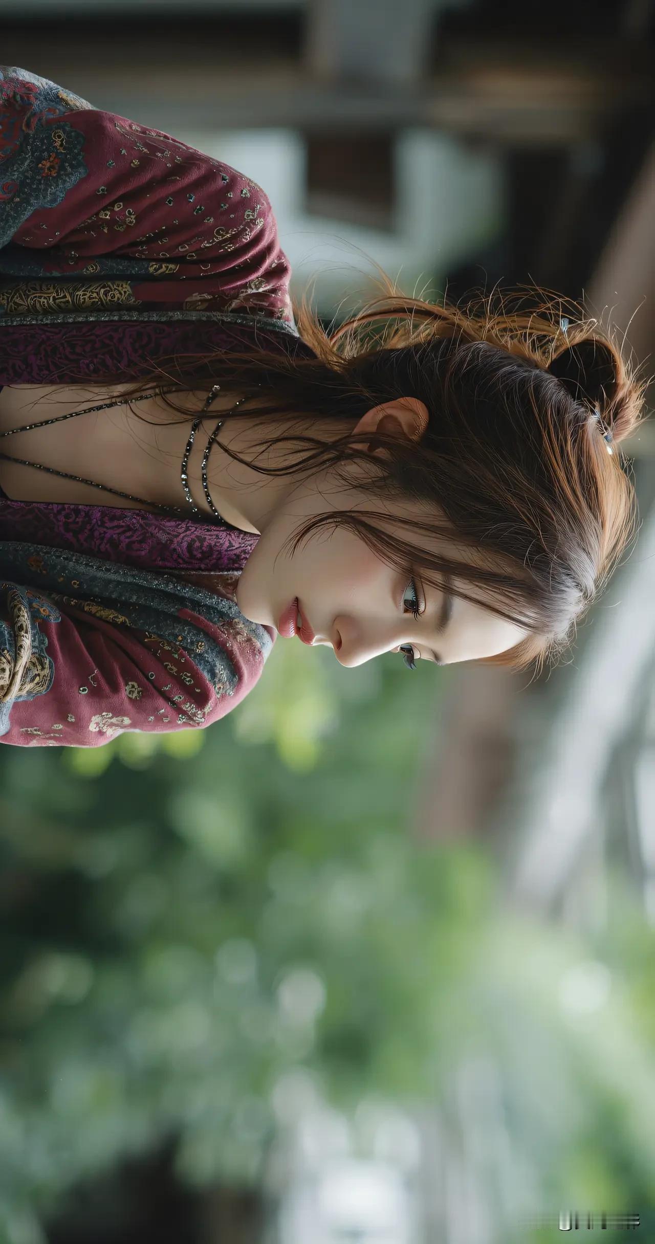 光之影&AI 阳光洒落,少女温柔的侧颜,黑发如瀑,清新自然。 阳光少女照 温婉侧