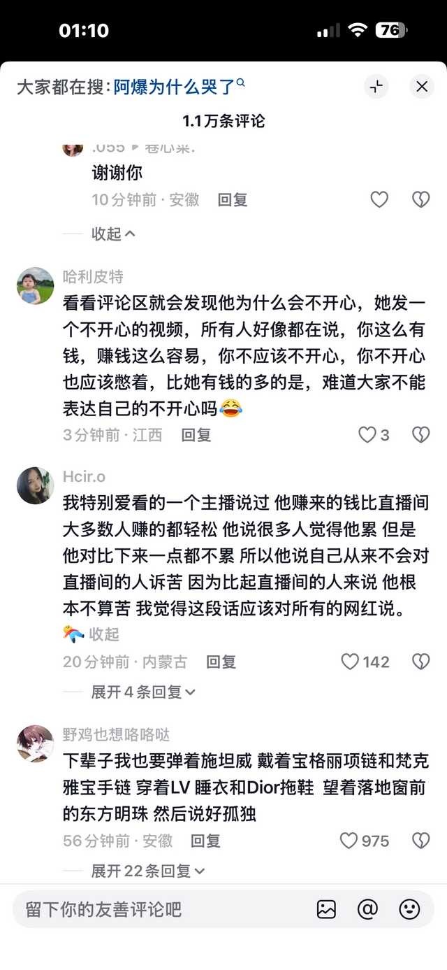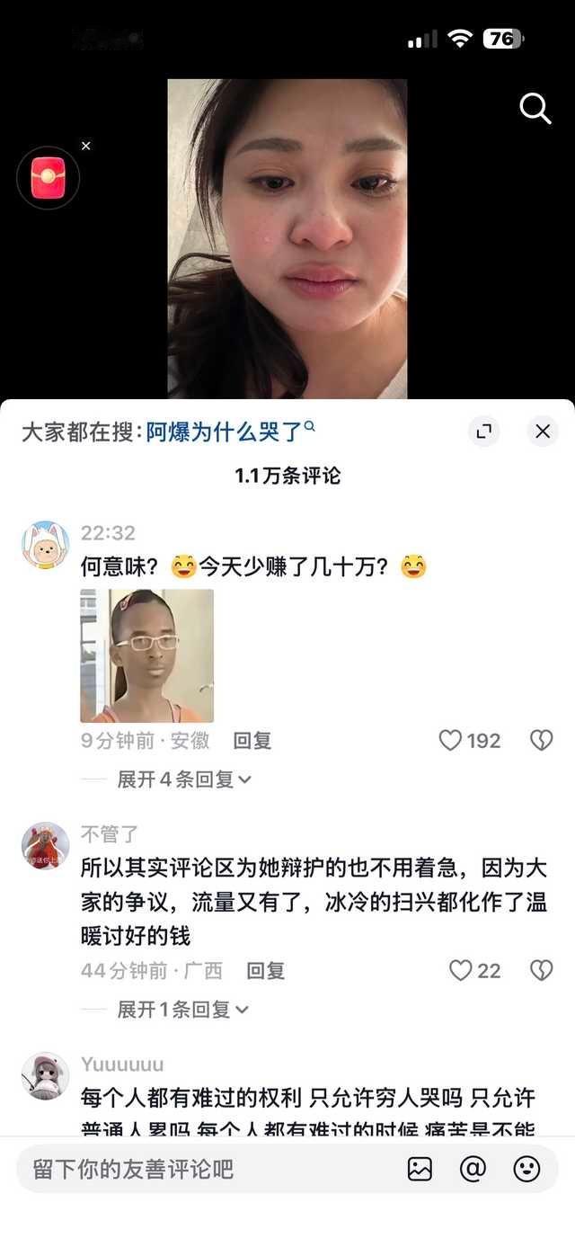 阿爆发了一张哭了的自拍评论区如图