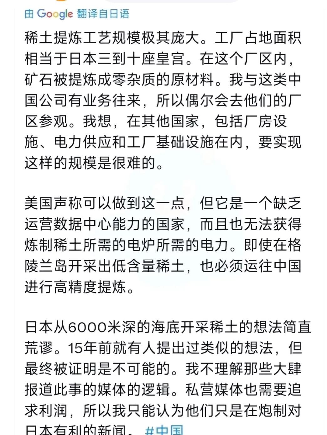 1月17日,有个刚从咱东方大国稀土提炼厂参观完的日本人,回过头就在网上说了句大实