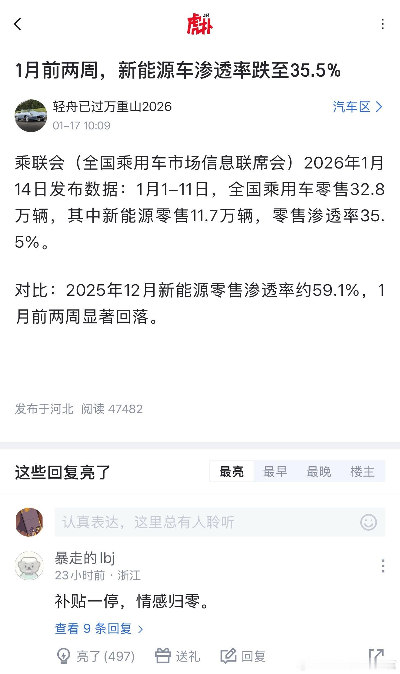 一月新能源渗透率暴跌?是跟补贴有关,还是跟燃油车年前消费意愿有关