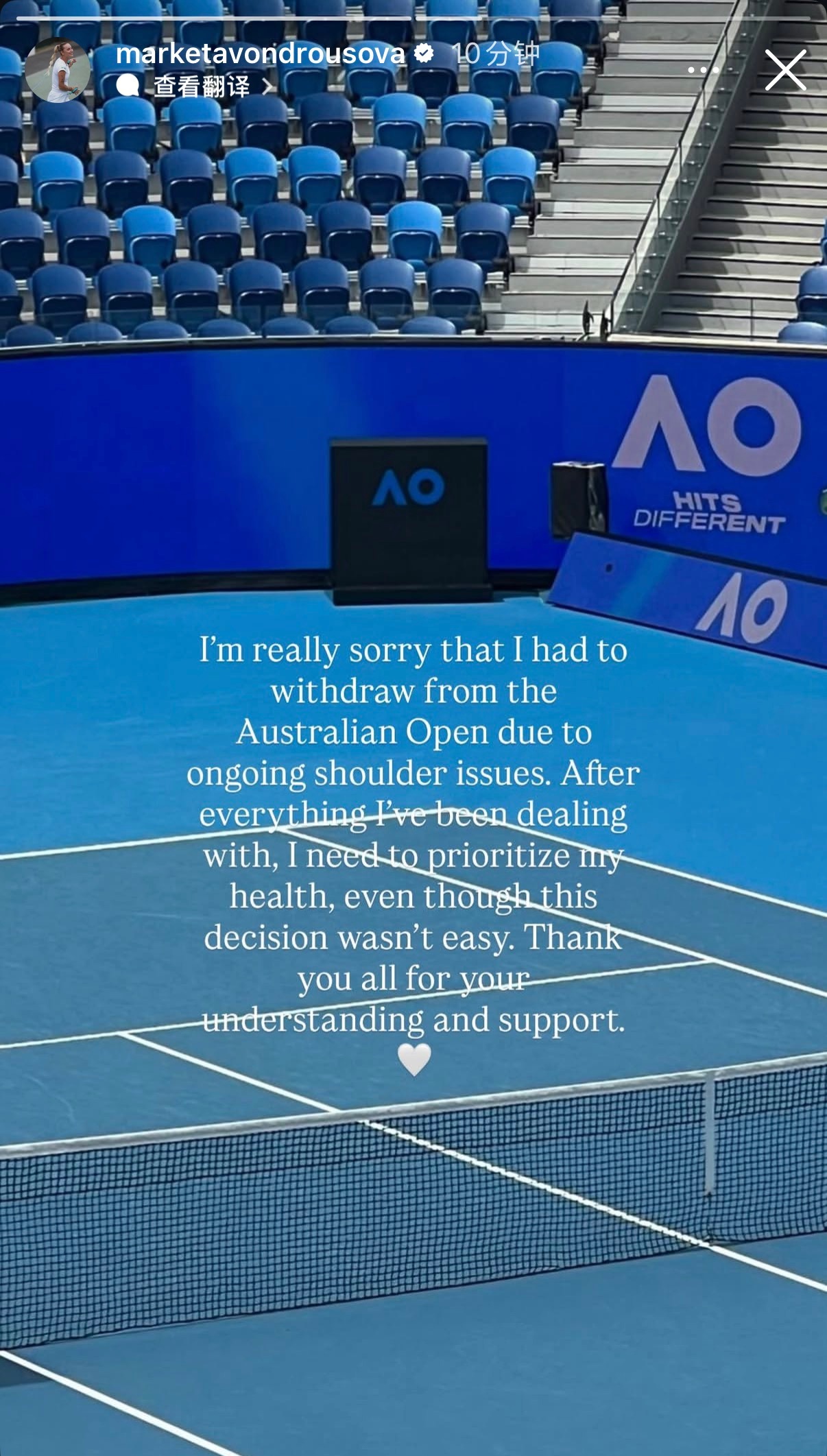 澳网女单32号种子万卓索娃宣布因伤退出本届赛事,这是她连续两个大满贯受伤病困扰退赛,汤森德成为幸运落败者进入正赛万卓索娃因伤退出澳网澳网2026