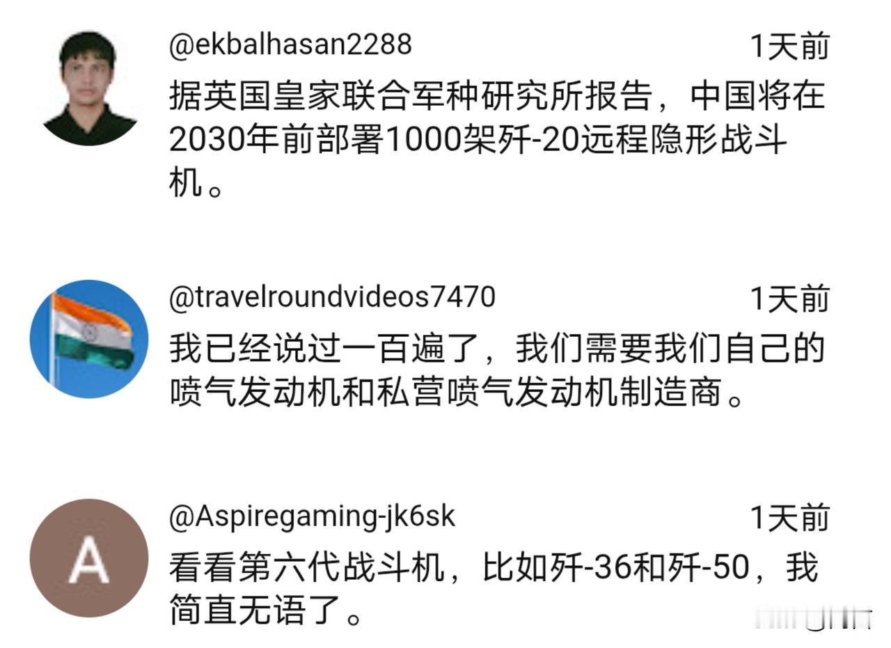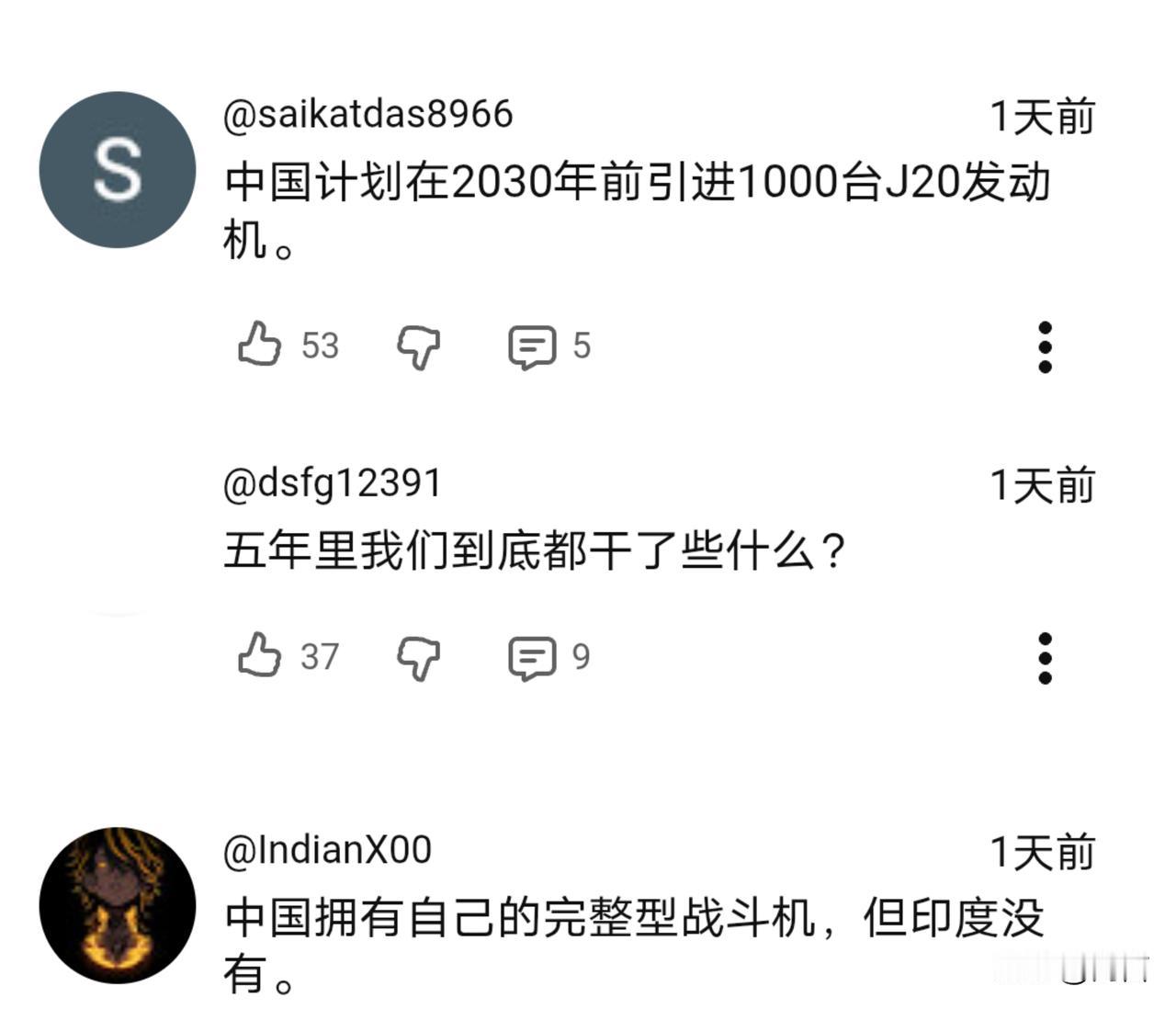印博主:邻居正在教印度如何成为空中强国?但我们能学会吗? 1月17日,一位印度博主回顾和总结了邻居是如何一步步空中强国的。他认为,邻居的成功为印度树立了榜样,但由于受到各种因素的制约,其成功经验恐怕是自家学不来的。他的意思非常明确,想要像邻居一样成功,就得补齐短板和全面进行改革。 几十年前,两国的航空工业几乎是处于同一水平线上。而今,结果却完全不同,邻居通过努力建立起了完整的航空工业体系,并率先成为世界上第一个研制出两款六代的国家;反观印度,还处于“引进为主,自研为辅”的阶段。 两国巨大的差距,令印度网友不淡定了,热议由此引发…