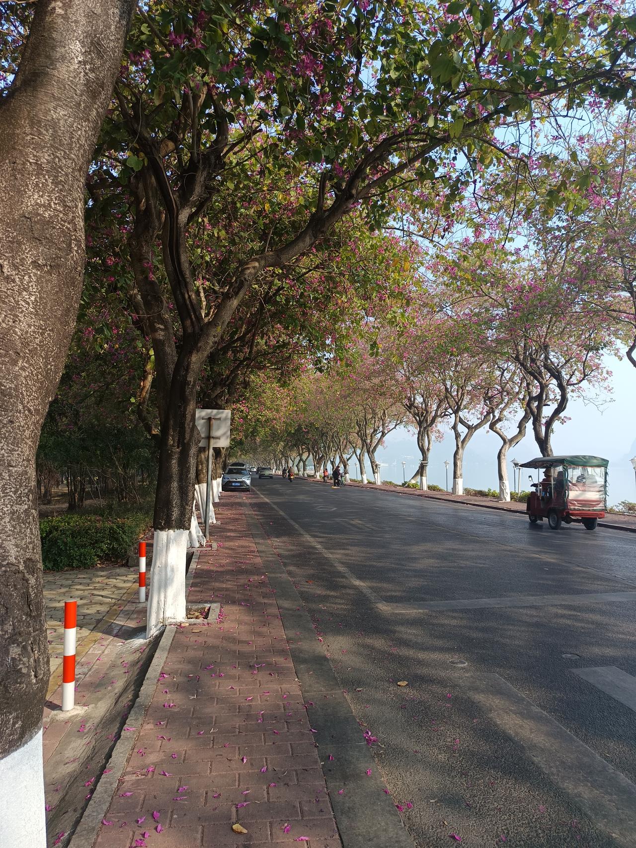 左边是星湖,右边是紫荆西提! 你敢相信吗?这里就是肇庆 旁边那个湖叫星湖 今天有很多雾气,搞得很朦胧,有点神仙那个味道 右边那个是紫荆西提,现在紫荆花已经盛开了 现在有很多游客都在打卡 每一张照片都是可以做风景那一种 你有冲动过来看一下吗?