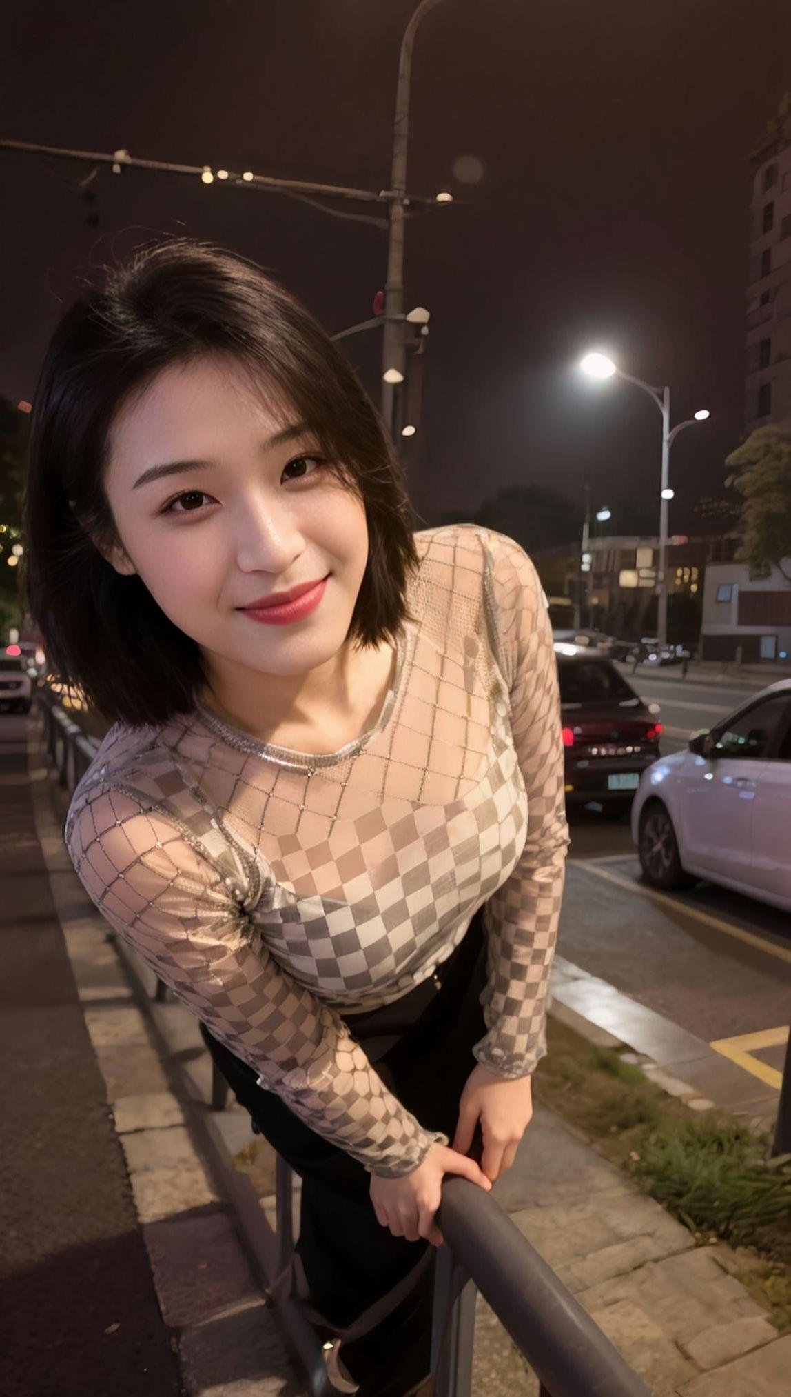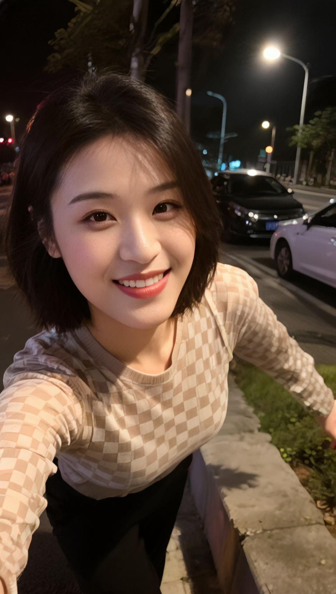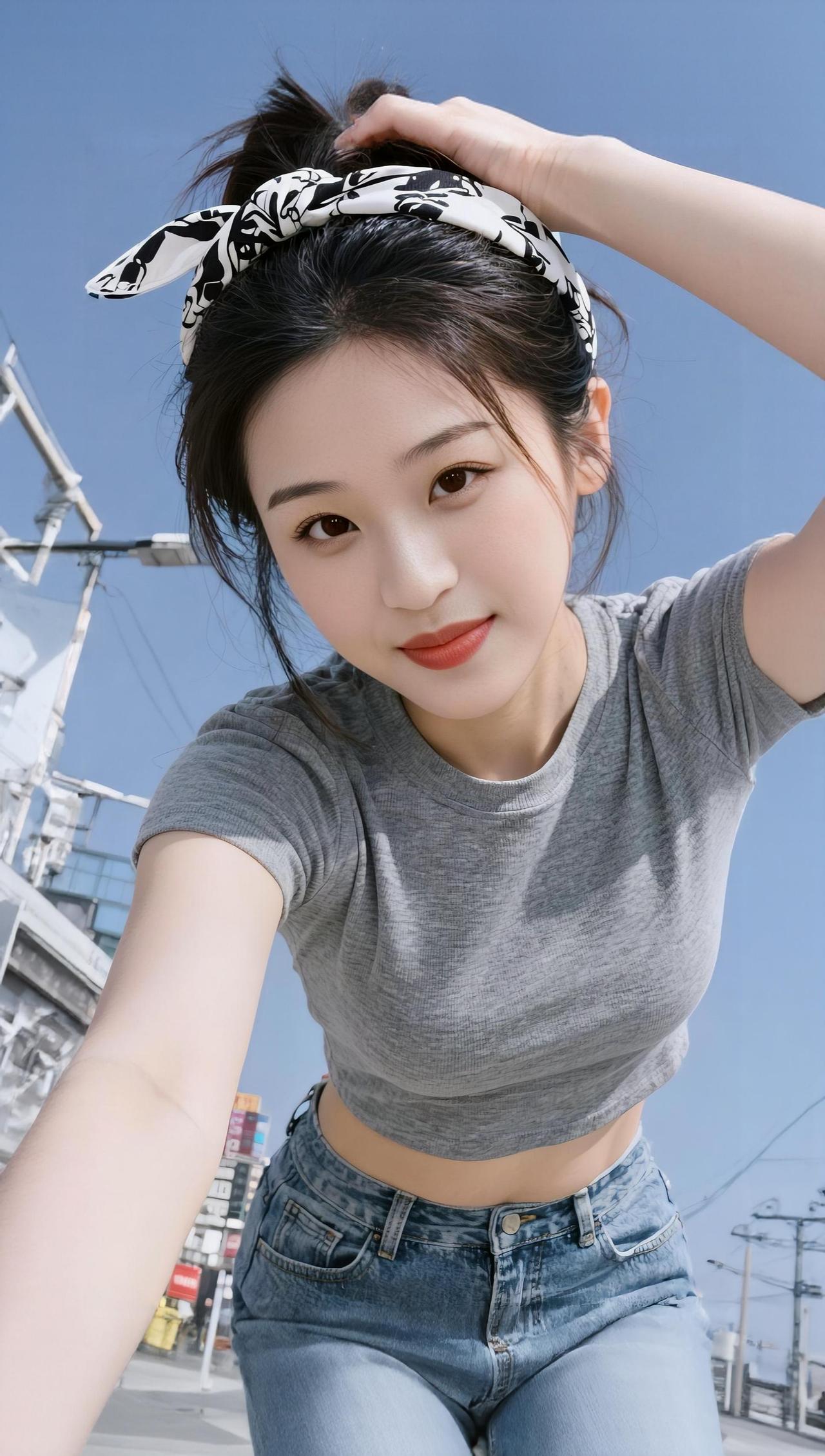 午后的光在发梢打了个旋 卷成蓬松的波浪 你的目光是一汪温软的水 漫过金属的冷,漫过墙的灰 指尖轻抵下颌 像拢住一朵欲绽的花 唇上那抹红 是春天提前寄来的信 米色针织衫里 藏着不疾不徐的温柔 世界在此刻按下静音 只有心跳,在轻声和鸣 鬓似春云卷复舒, 明眸流盼胜明珠。 轻衫漫剪裁云质, 浅笑微含带露珠。 一缕柔风拂翠袖, 半弯娥月映冰肤。 无端惹得人沉醉, 始信人间有玉壶。