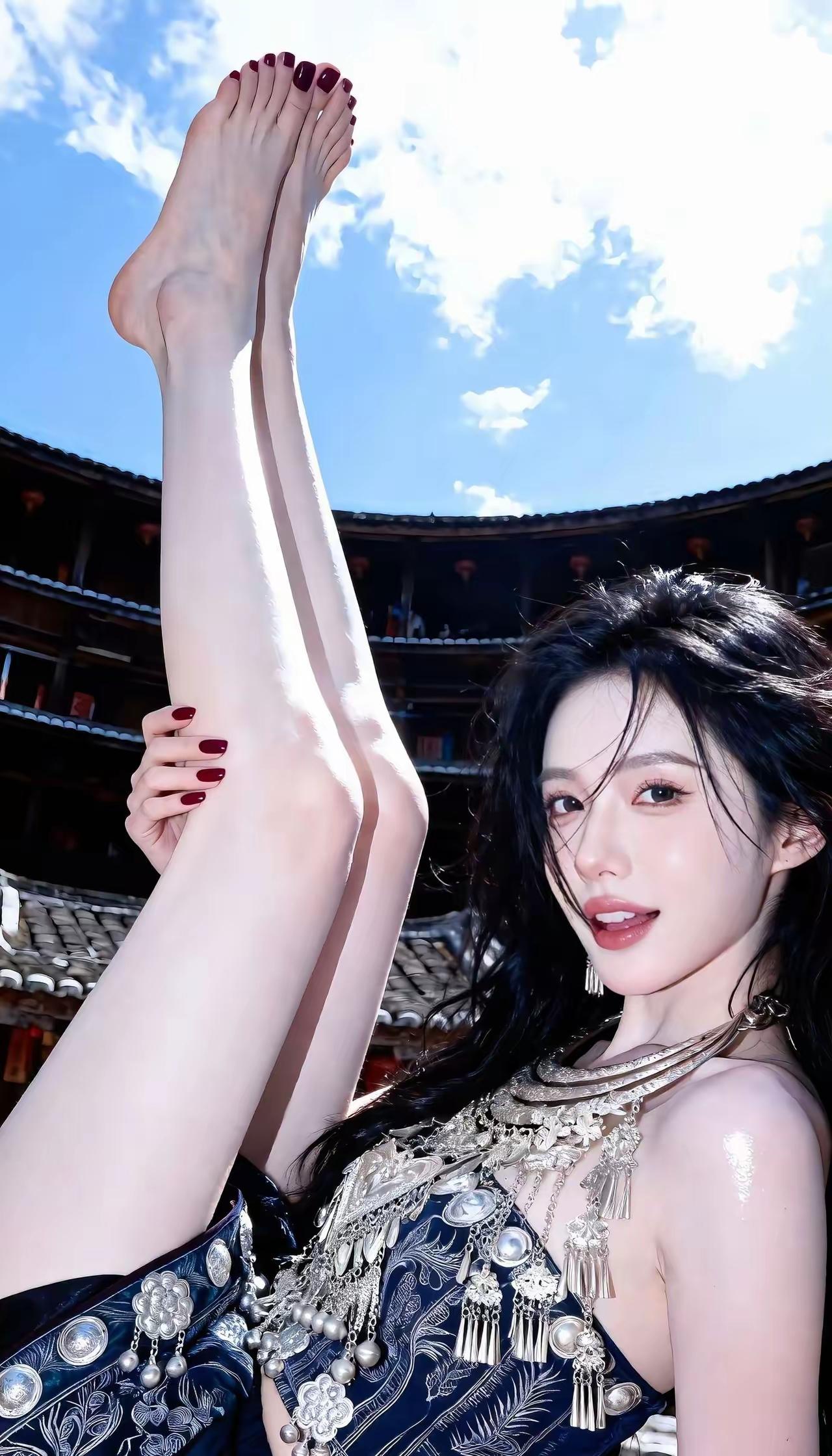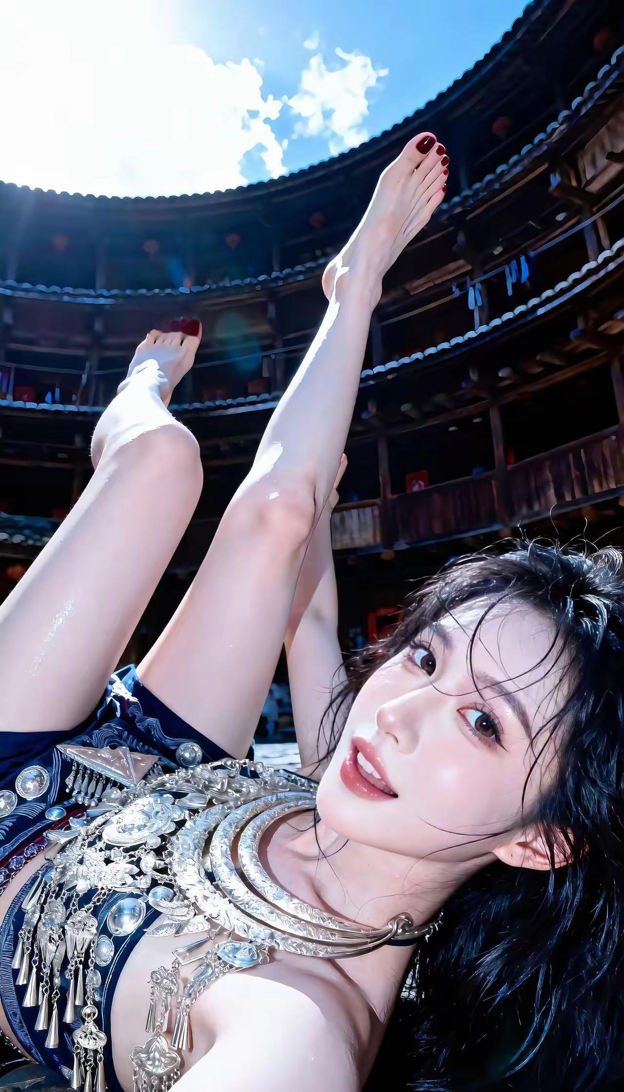 异域风情少女,惊艳的民族风服饰,赤脚踏石阶,阳光下的美丽瞬间。用一句话证明你看过赵本山的小品