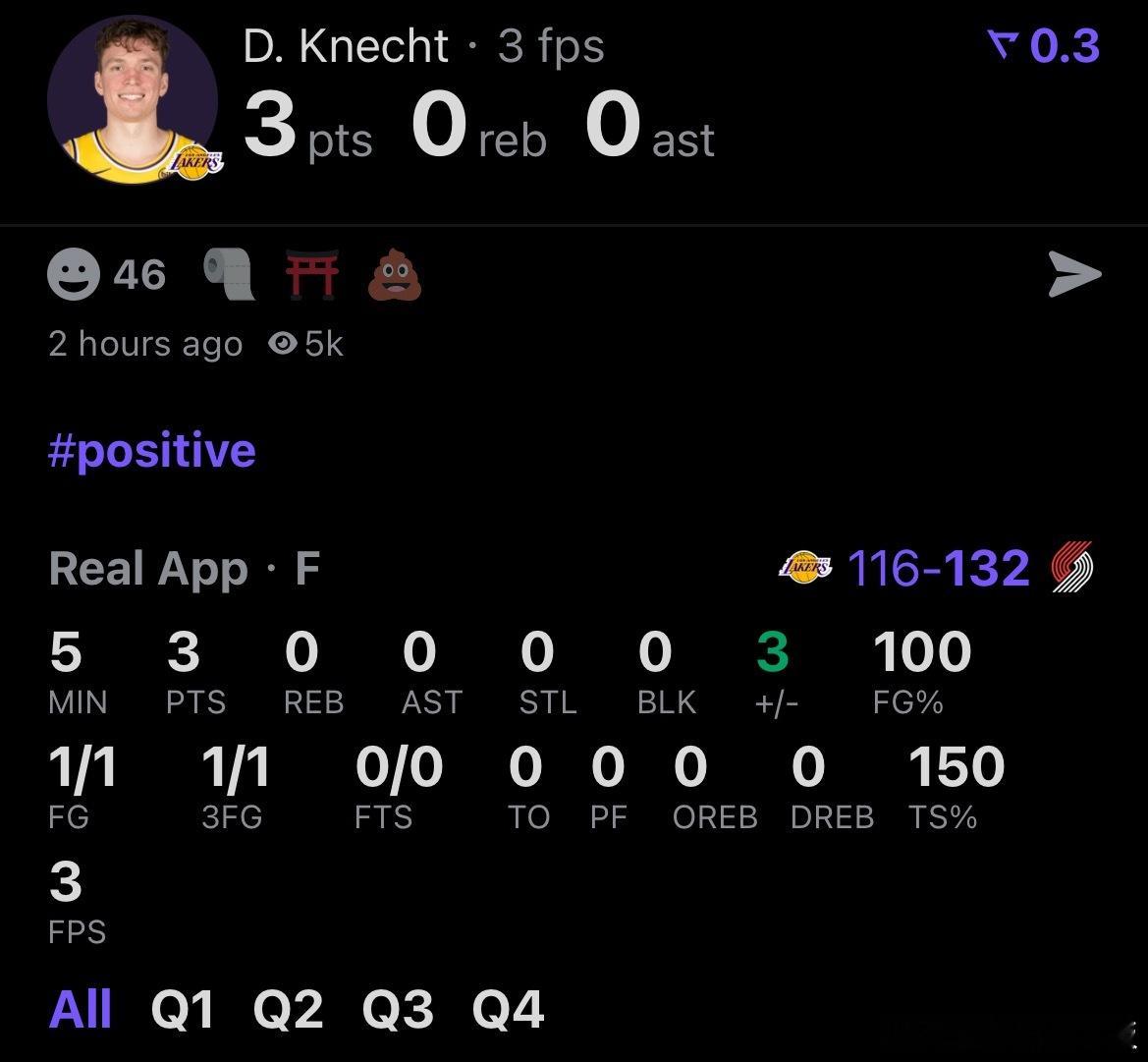 彻底掉出轮换!克内克特本场得到3分,仅在垃圾时间登场4分55秒老克本场的轮换次序低于尼克-史密斯、巴夫金和布朗尼,连续的低迷发挥已彻底失去教练组信任……湖人vs开拓者