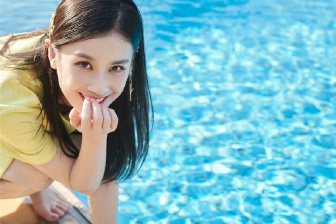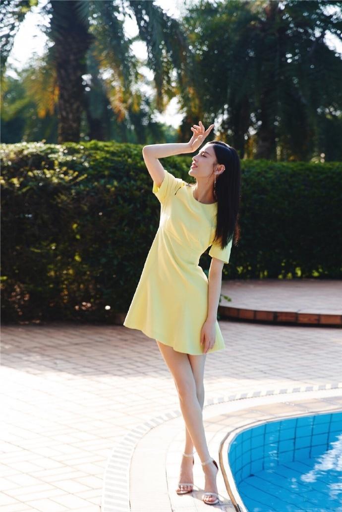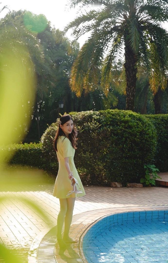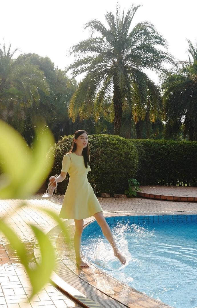黄圣依,泳池边穿黄裙子的姐姐,好生温柔。
