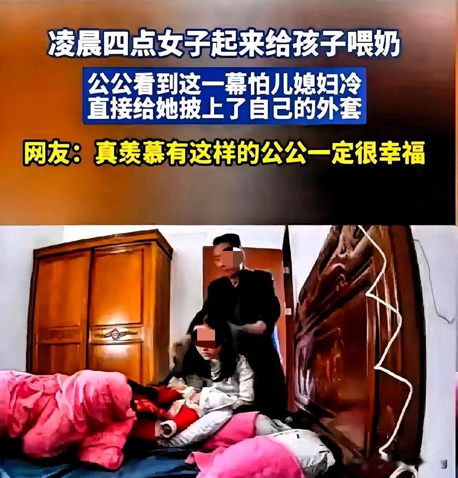 破防了!凌晨4点喂奶,公公悄悄披来的外套,藏着最戳心的家庭温度 谁懂啊!广东这位新手妈妈的经历,直接暖到了心坎里!凌晨4点摸黑起来喂奶,只穿了件薄家居服的她冻得手脚发凉,生怕开灯吵醒家人,只能默默硬扛。 就在这时,公公悄悄走到身后,把自己的外套披在了她身上,没多说一句话,转身就回了屋。这个沉默的举动,瞬间戳中了无数人的泪点。 都说公媳之间要保持距离,可真正的家人,从不是靠客套的寒暄维系,而是藏在这些不动声色的体贴里。 这件外套暖的不只是身体,更是一颗在育儿疲惫里快要撑不住的心。 其实家庭的温暖从不用刻意营造,一个眼神、一个动作,就足够抵过千言万语。 你身边有没有这种让人瞬间破防的家庭暖心小事?评论区分享一下吧!