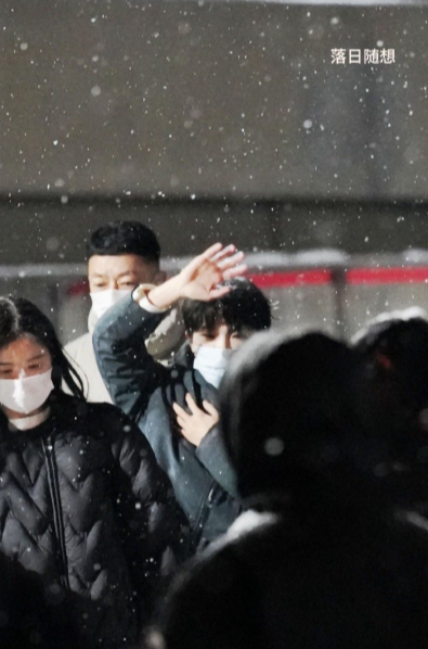 深这是赶着去春晚彩排的路上偶遇初雪吧?穿着厚厚的冬装,在雪花里走得特别精神。他低头看手机的样子,没准正在拍雪景呢!毕竟能把歌唱得像童话的人,一定也很会收藏冬天的美好。