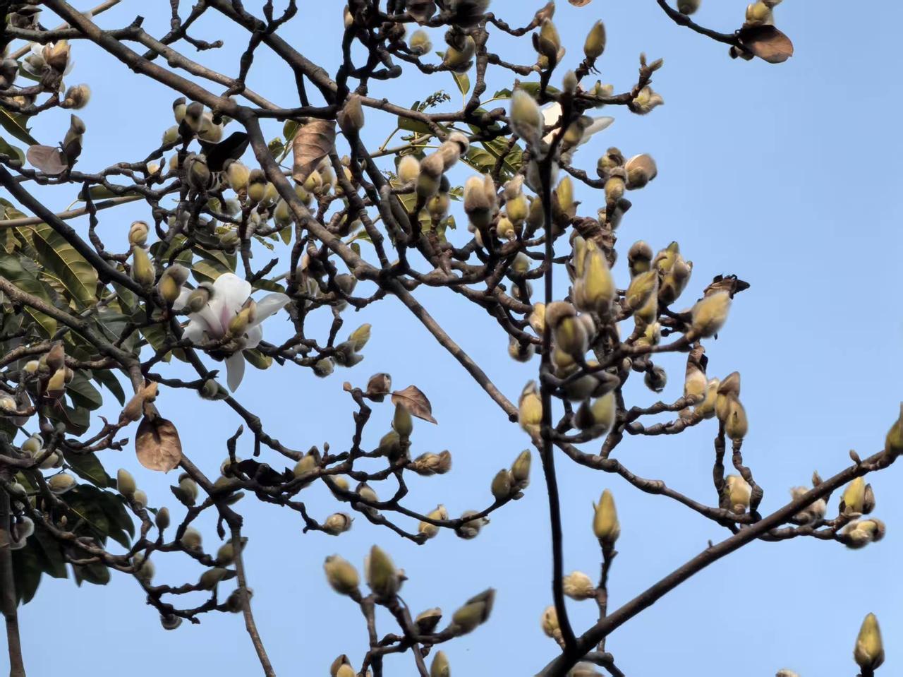成都连续几天的冬日暖阳,玉兰都提前开花了! 这几天成都的天气是出奇的暖和,气温十七八度,每天都有太阳,大家都出来晒太阳了。连植物都误以为春天已经来了。 小区的玉兰花也蠢蠢欲动,提前绽放出了花苞。 又一年花开花谢,很让人感叹。 如果以人的视角去看花,也许会觉得人如花一样短暂。 如果以花的视角来看人,也许会觉得人如宇宙一样永恒。