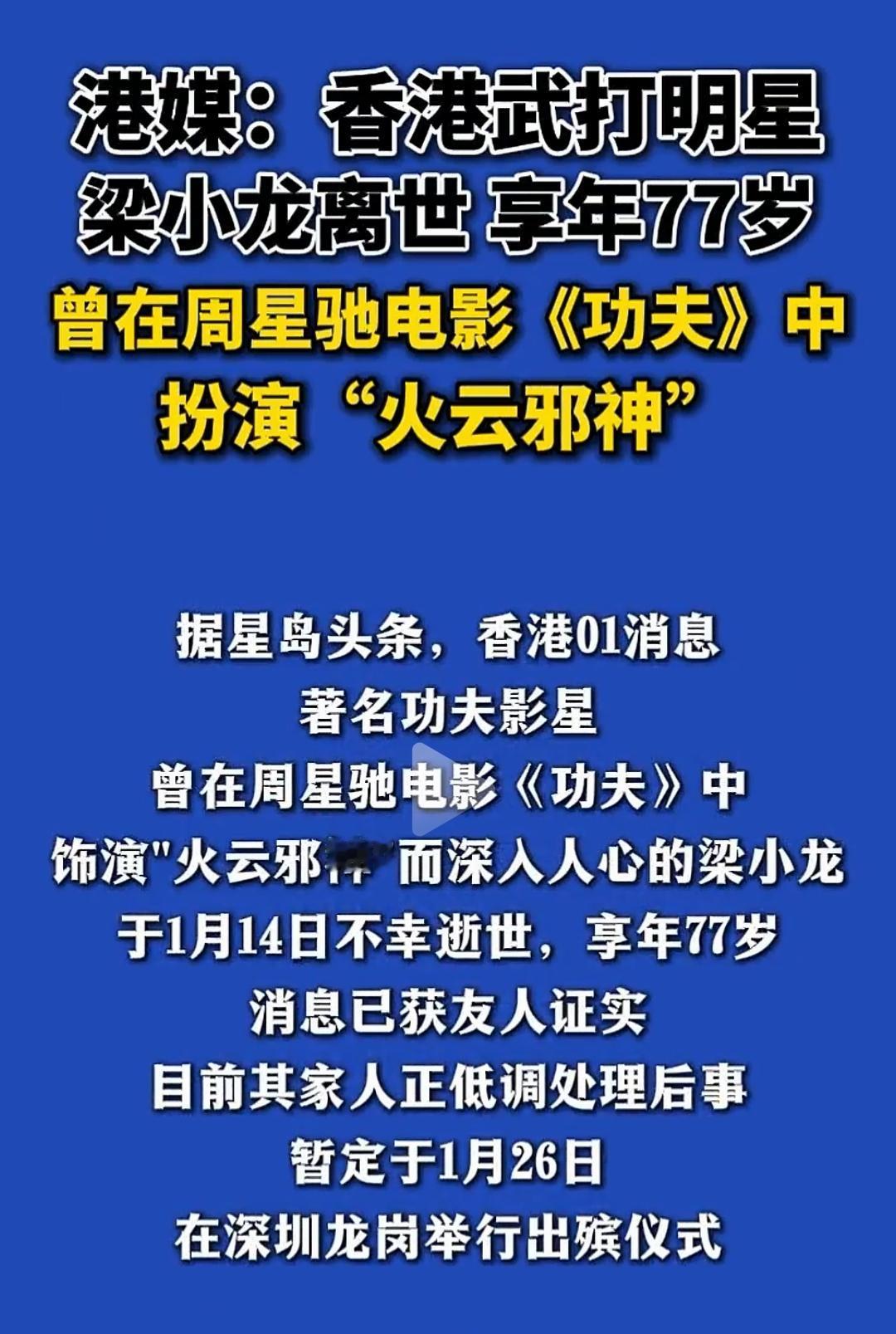 是你饰演的陈真让我们记得大号是中华,但是年轻的孩子们只记得火云邪神了。“火云邪神”梁小龙去世 一生之中有两个这样出色的角色,足矣。 我们会永远记得那个用脚踢碎“东亚病夫”牌匾的人,也会记得那个独闯日本匪窝的人。 梁小龙先生,一路走好![蜡烛]