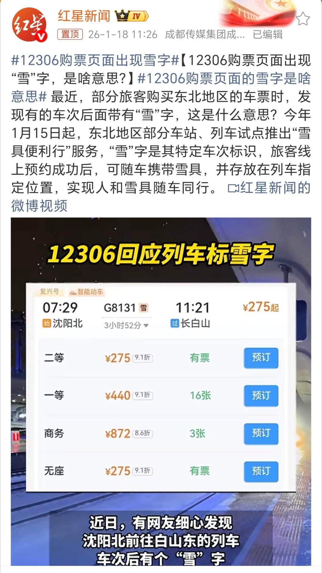 12306购票页面出现雪字这就超级方便了,去滑雪场可以做高铁拿各种雪具了,这样就不用折腾了