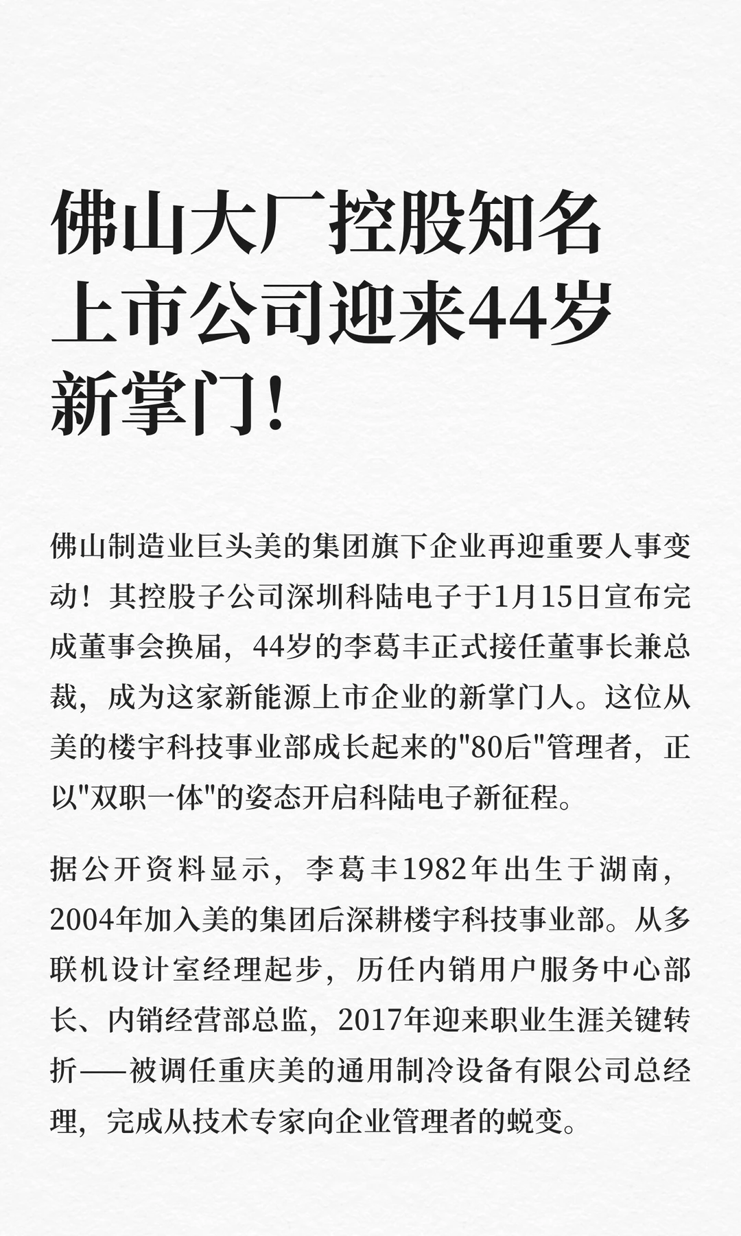 佛山大厂控股知名上市公司迎来44岁新掌门