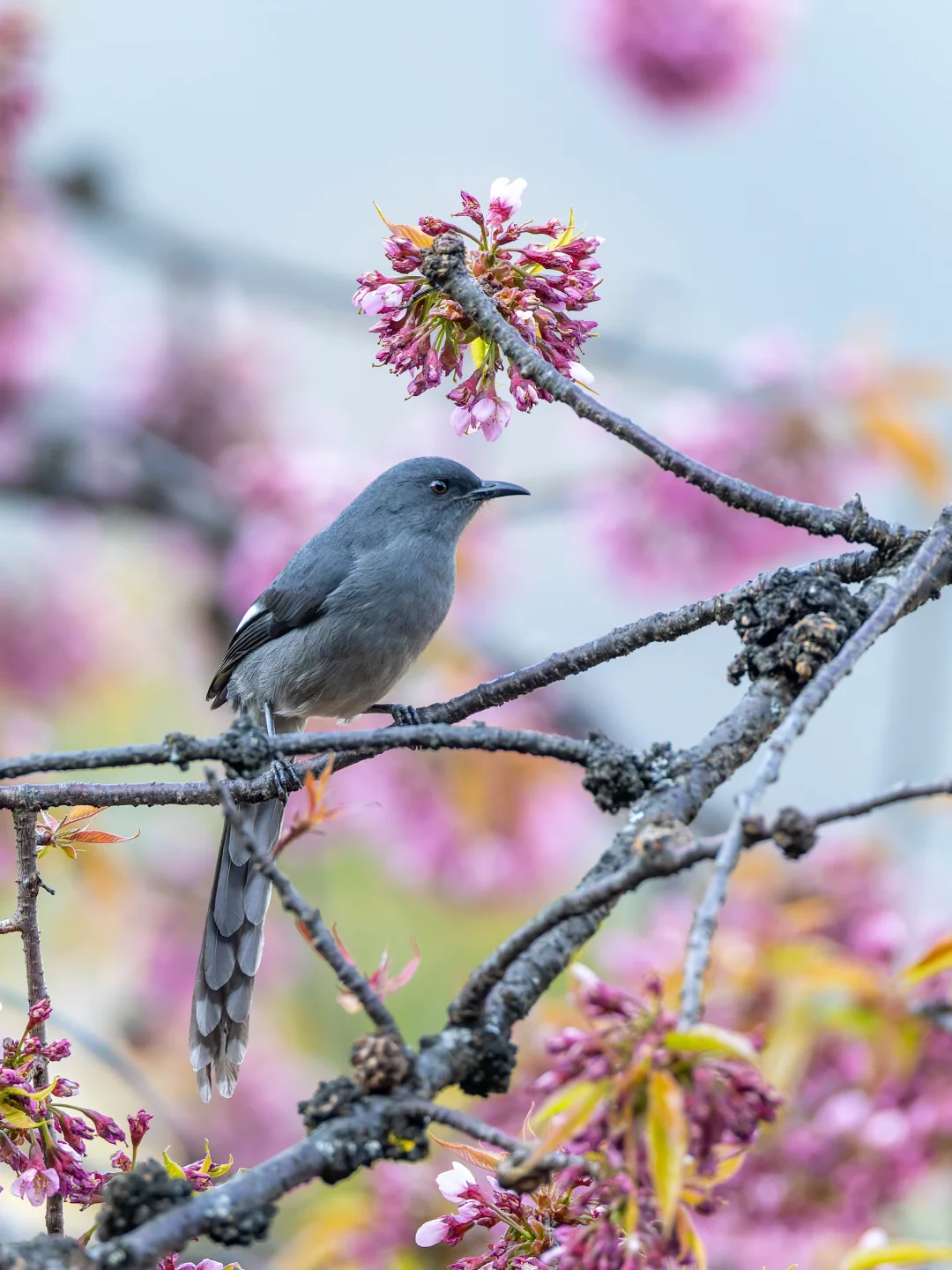 原创拍摄于2026.01 长尾奇鹛,Long-tailed Sibia,雀形目噪鹛科奇鹛属的鸟类。分布于喜马拉雅山脉以南至中南半岛,我国就主要在西南地区。 长尾奇鹛,尾巴异常的长,整个体型也就显得纤细小巧。全身灰调,眼睛红色或棕色。它们喜欢发出一连串的颤音,像是在嘲笑观鸟人哈哈哈。 我国名字叫奇鹛的鸟一共有7种,还差两种。。