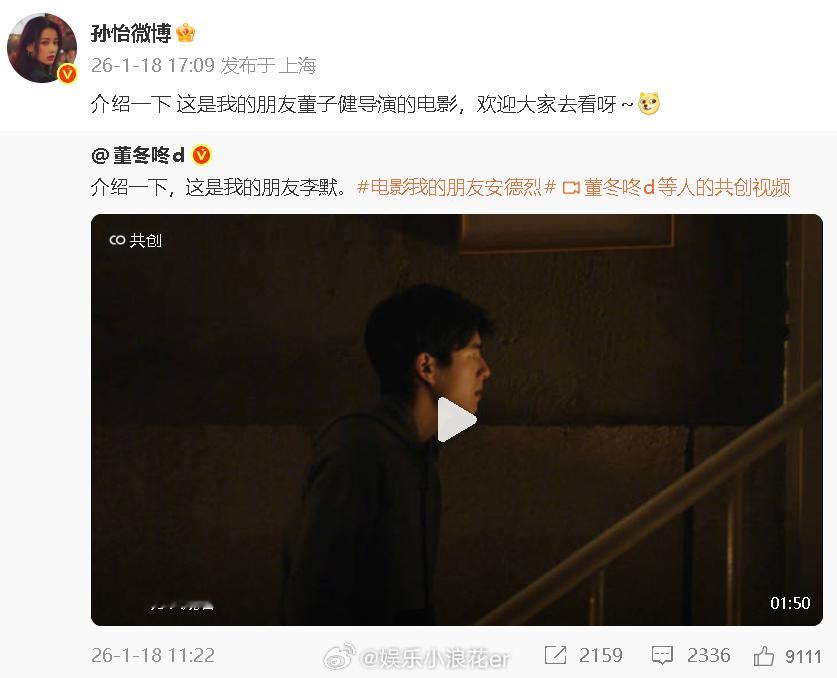 孙怡 这是我的朋友董子健孙怡宣传董子健新电影 “介绍一下 这是我的朋友董子健导演的电影,欢迎大家去看呀~”