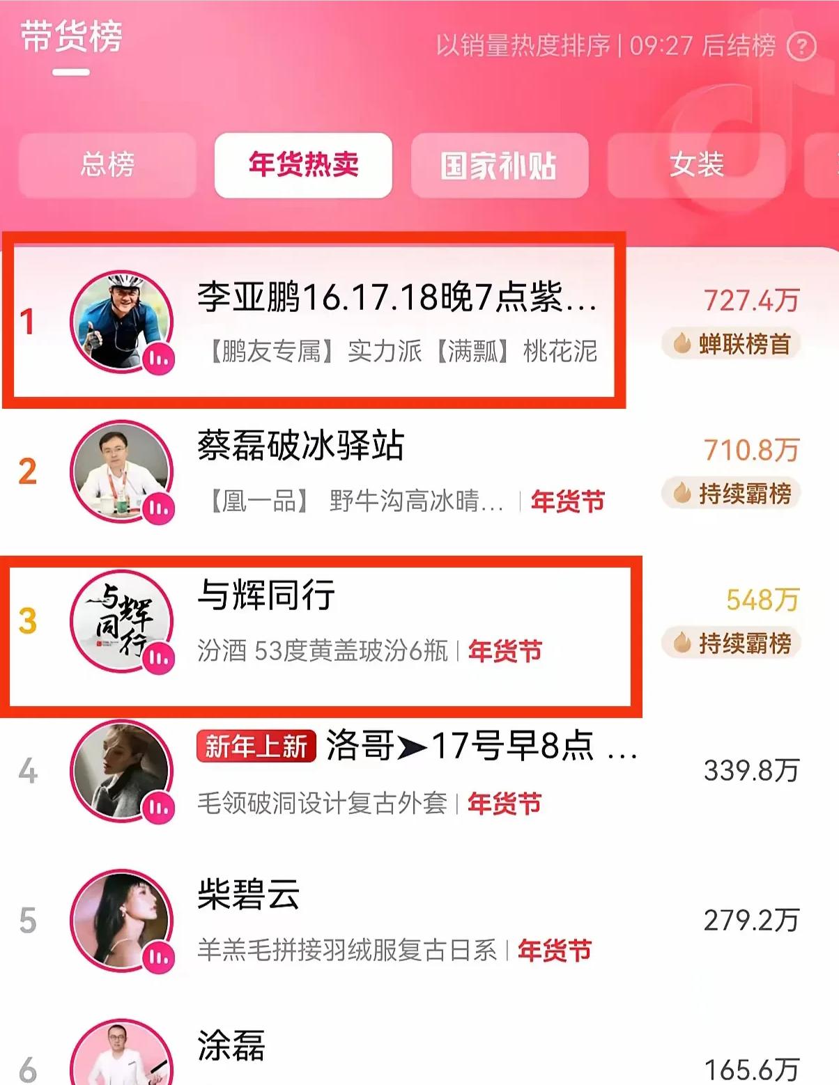 果然听人劝,吃饱饭!李亚鹏直播间一夜爆单登顶带货榜第一,轻松打败了董宇辉和蔡磊,