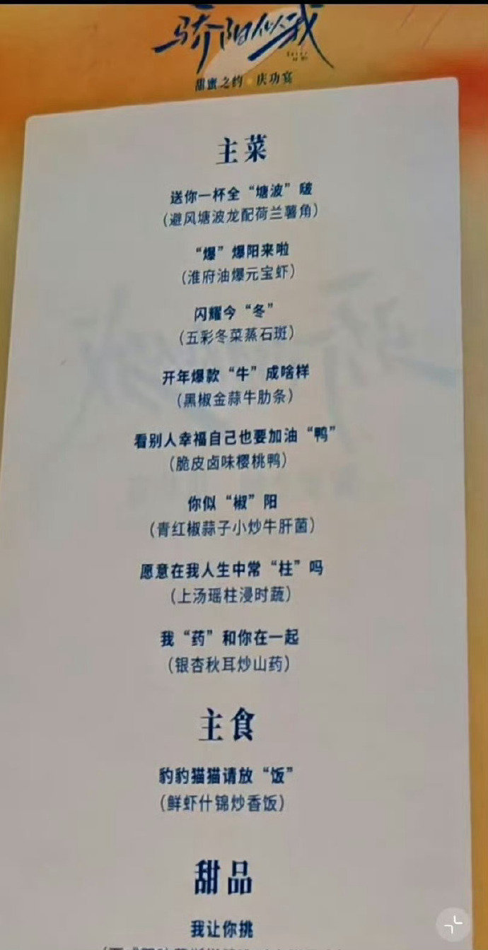 骄阳似我庆功宴菜单全是剧里的热梗骄阳似我庆功宴菜单全是剧里的梗豹豹猫猫请放饭