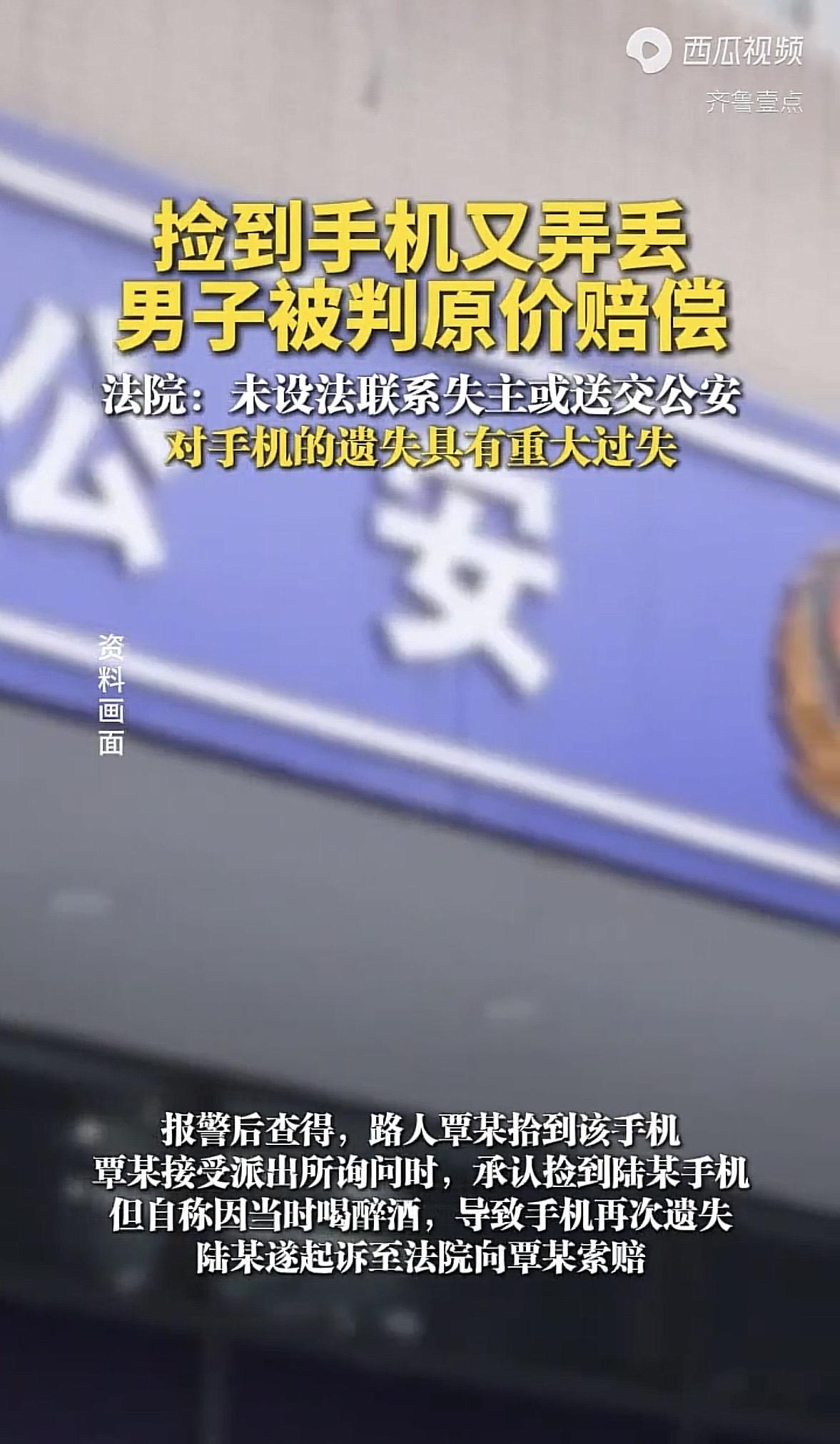 广西南宁,男子醉酒后捡到一部崭新的手机,他随手放进了车头的屉桶里,失主报警后找上男子,要求物归原主,男子却面露难色,说手机丢了,失主非常生气,认为男子没有保管好手机,应负全责,他诉至法院,要求男子按2999的原价赔偿他,结局亮了。   捡来的东西丢了,凭什么要我赔?这个问题,南宁市民覃某到现在可能都没想通,但法院的一纸判决,已经给他的疑问画上了句号。   这场让覃某损失近三千元的纠纷,源头只是一次醉酒后的弯腰,时间拨回2024年7月,南宁街头的人流里,市民陆某正忙着办事。   他口袋里揣着的新手机,是刚花2999元买的,机身还带着新机的顺滑手感,手机壳内侧夹着的身份证,更是日常出行的必备物件。   谁也没料到,一次普通的掏口袋动作,让手机滑落在了人行道上。等陆某发现时,手机早已没了踪影。   报警后的调监控环节,成了整个事件的关键转折点。监控画面清晰记录下:路过的覃某看到了地上的手机,弯腰捡起,跨上摩托车就走了。   拿着监控证据,陆某以为这就是板上钉钉的事,找到覃某就能拿回手机。   可见面时覃某的话,让他从头凉到脚。覃某直言,当天喝了不少酒,脑子不太清醒,捡到手机后既没想着找失主,也没往派出所跑,只是随手塞进了摩托车车头那个敞口的屉桶里。   那个屉桶有多不靠谱?骑过摩托车的人都清楚:空间浅、没锁扣,放瓶矿泉水过个减速带都能颠出来,更别说一部没任何防护的手机。   覃某这个动作,本质上就是把手机又“丢”回了公共空间,等覃某酒醒后想起这事,屉桶里早就空了。   面对陆某的索赔要求,覃某满是委屈,我又没偷又没抢,就是捡了个东西,丢了怎么还得我赔钱?   在大多数人的认知里,这话似乎没毛病,捡东西不还,顶多是道德层面的问题;就算不小心弄丢了,也算不上什么大事。   但陆某不这么想,你捡走手机,就断了我自己找回来的路;又因为你保管不当弄丢,凭什么让我承担损失?   协商不成,陆某一纸诉状递到了广西都安瑶族自治县人民法院,更让事情走向明朗的是,覃某收到传票后选择了逃避,既不提交答辩材料,也不出庭应诉,主动放弃了辩解的机会。   法院的判决,直接戳破了很多人“捡东西无责”的认知误区。   法官审理时明确,从覃某弯腰捡起手机的那一刻起,他就和失主陆某形成了法律上的“无因管理”关系,成了这部手机的临时保管人。   根据《民法典》第316条,拾得人在送交遗失物前,有妥善保管的义务;因故意或重大过失导致物品毁损、灭失的,必须承担民事责任。   覃某把贵重手机放进毫无防护的摩托车屉桶,属于典型的“重大过失”;而他提出的“醉酒”理由,也被法院直接驳回,醉酒是自身选择的状态,不能成为免除责任的借口。   至于赔偿金额,依据《民法典》第1184条“损失按事发时市场价格计算”的规定,结合陆某提供的购买发票,手机购买和丢失间隔极短,几乎没有折旧,2999元的原价赔偿诉求完全合理。   最终,覃某被判全额赔偿,判决生效后他也没有上诉。   很多人不知道,处理路边遗失物,其实有两个最安全的选择:要么不捡,让物品留在原地,留给失主自己寻找;要么捡起来后第一时间送交公安机关,由官方帮忙联系失主。   这两种方式,都能彻底规避保管不当的法律风险。   覃某的经历,就像一面镜子,照出了日常行为里隐藏的法律边界。路边的遗失物从来不是“免费馅饼”,一次看似无意的弯腰,可能就会背上沉甸甸的责任。   路边遗失物最优处理方式为不捡拾或直接上交公安机关,避免因承担保管义务不当引发法律风险,这不仅是法律的要求,更是保护自己的生活智慧。   信息来源:杭州日报2026-01-13发布:广西南宁一男子捡到一部手机后又因醉酒遗失,失主将其告上法院,法院:赔偿失主2999元