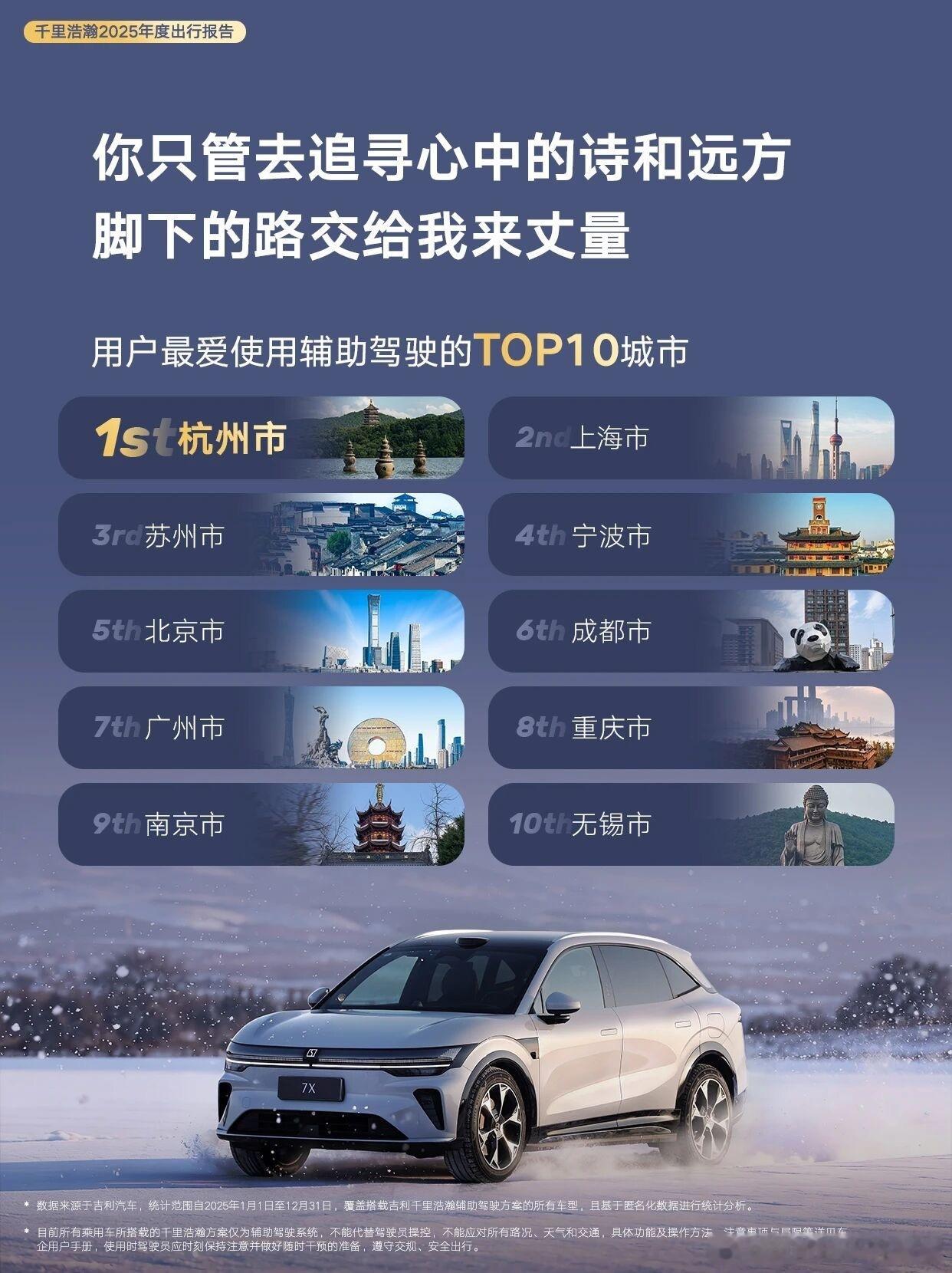 来看看千里浩瀚的2025年辅助驾驶出行报告,过去一年新增了32项功能,可谓进步神速。有意思的是,千里浩瀚还公布了一份用户最爱用辅助驾驶的城市TOP10,第一名你们猜会是哪里