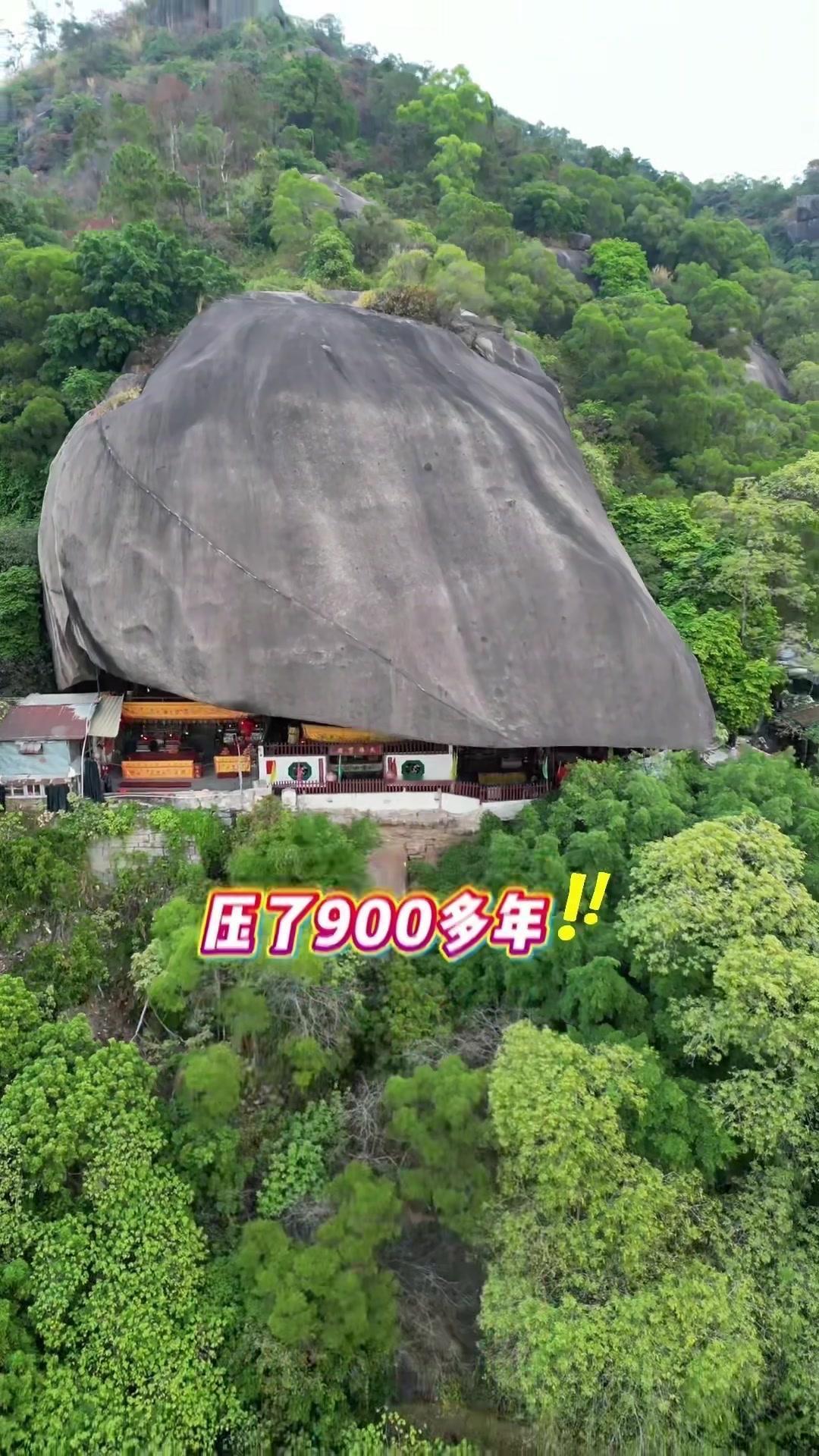在广东潮州的深山里,藏着一座神奇寺庙——甘露寺。两吨重的巨石压在上面900多年,