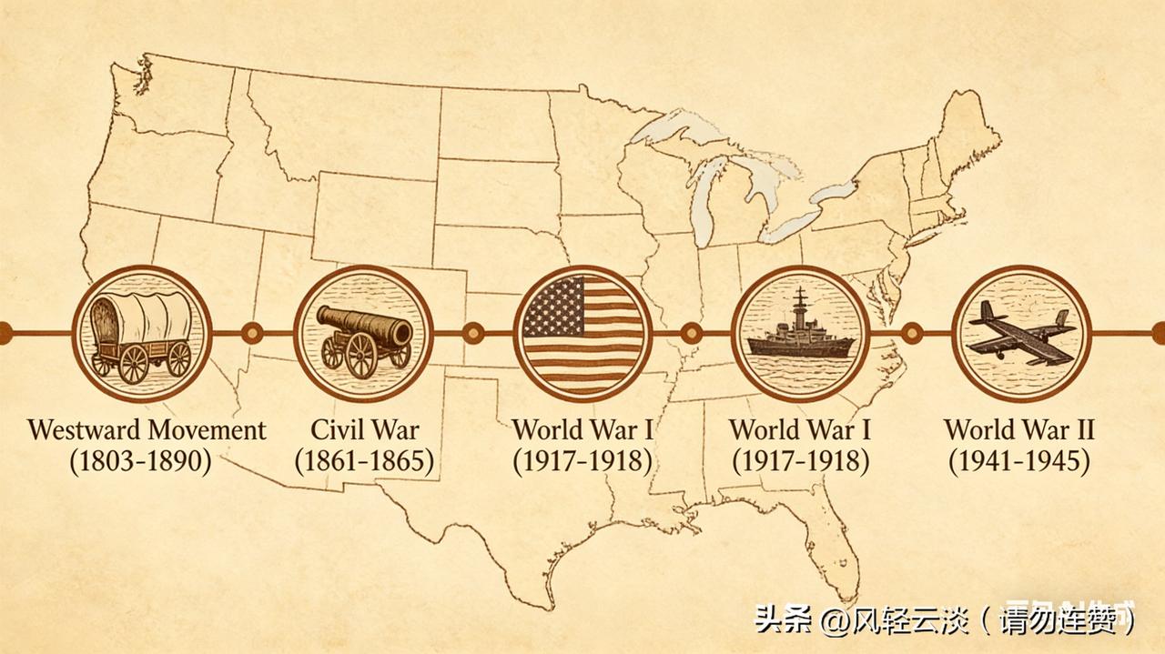美国崛起成超级大国,核心就这5个客观原因(全是史实) 美国从殖民地跃升全球超级大国仅用百余年,绝非偶然,核心是多重客观条件叠加,每一点都有史实支撑: 1. 地缘天险加持:东西临大洋、南北邻弱国,本土远离欧亚战火,两次世界大战毫发无损,还靠军火贸易赚足原始资本,广袤平原+密西西比河,既稳粮食又通贸易; 2. 制度保障稳定:1787年宪法确立三权分立,权力平稳交接,200余年无大规模内乱,专利法护创新、赠地大学强教育,筑牢发展根基; 3. 精准抓历史机遇:西进运动拓领土攒资源,南北战争扫清发展障碍,两次世界大战趁势崛起,取代欧洲成为全球秩序主导者; 4. 人才与创新驱动:顶尖教育体系吸引全球精英,从电灯到硅谷科技,长期垄断核心技术,形成良性创新生态; 5. 美元霸权兜底:布雷顿森林体系确立美元核心地位,靠货币控制权影响全球经济,轻松转嫁危机、赚取铸币税。 以上均为客观历史与地缘分析,不代表立场倾向;信息源于世界近现代史、地缘政治学、国际金融学公认结论及美国官方史料记载,有据可查。 美国崛起 大国崛起 地缘政治 (来源于网络)