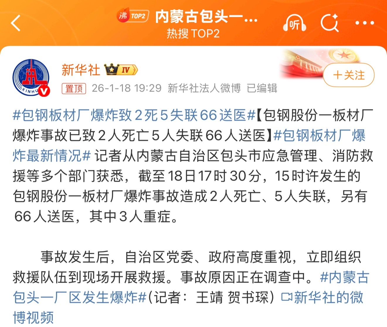 内蒙古包头一厂区发生爆炸,年底了,注意生产安全,平安过年,祝失联的几位平安。