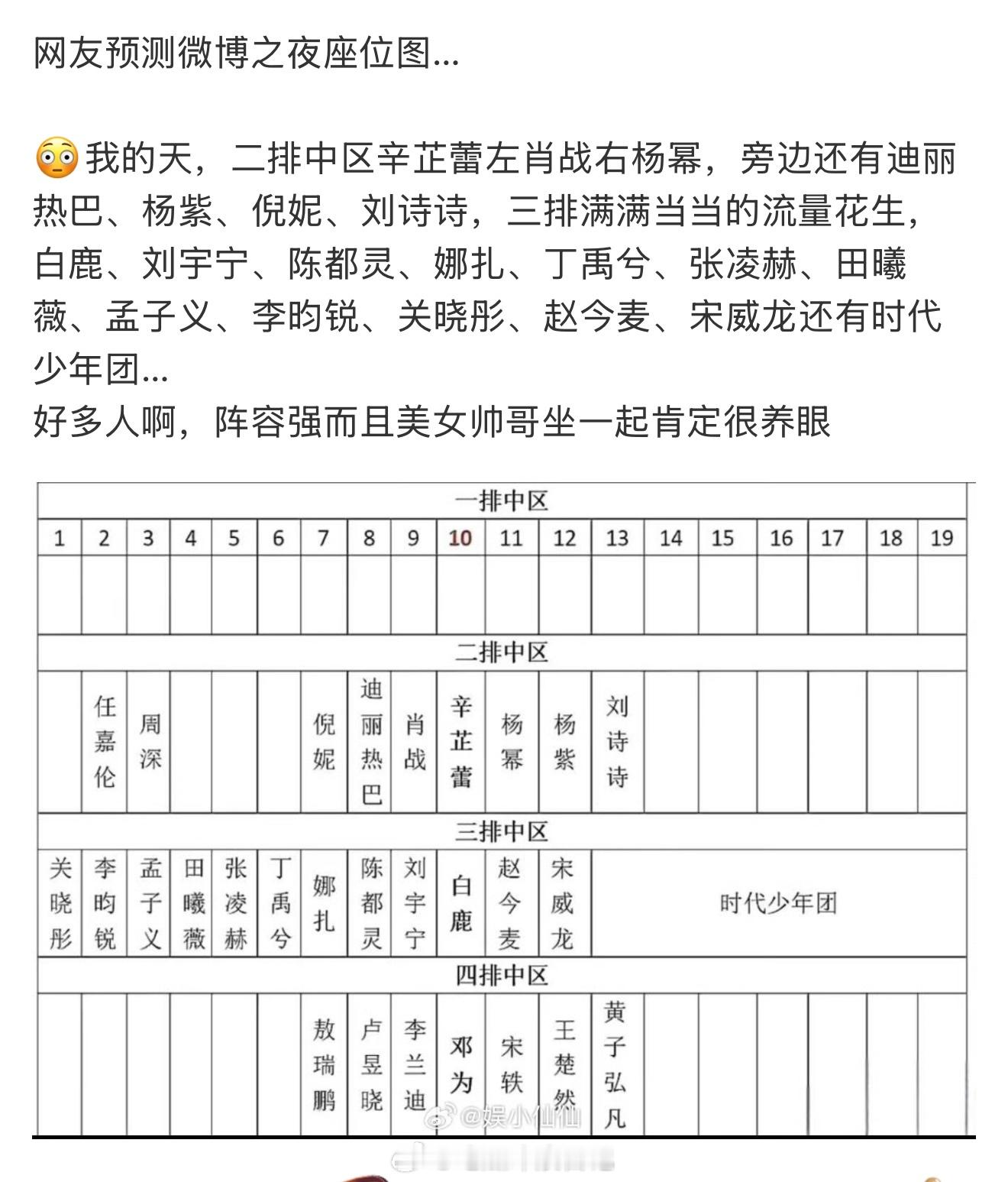 今年微博之夜谁能坐第二排微博之夜不愧是内娱星光最强的年度盛典,还没开始官宣嘉宾