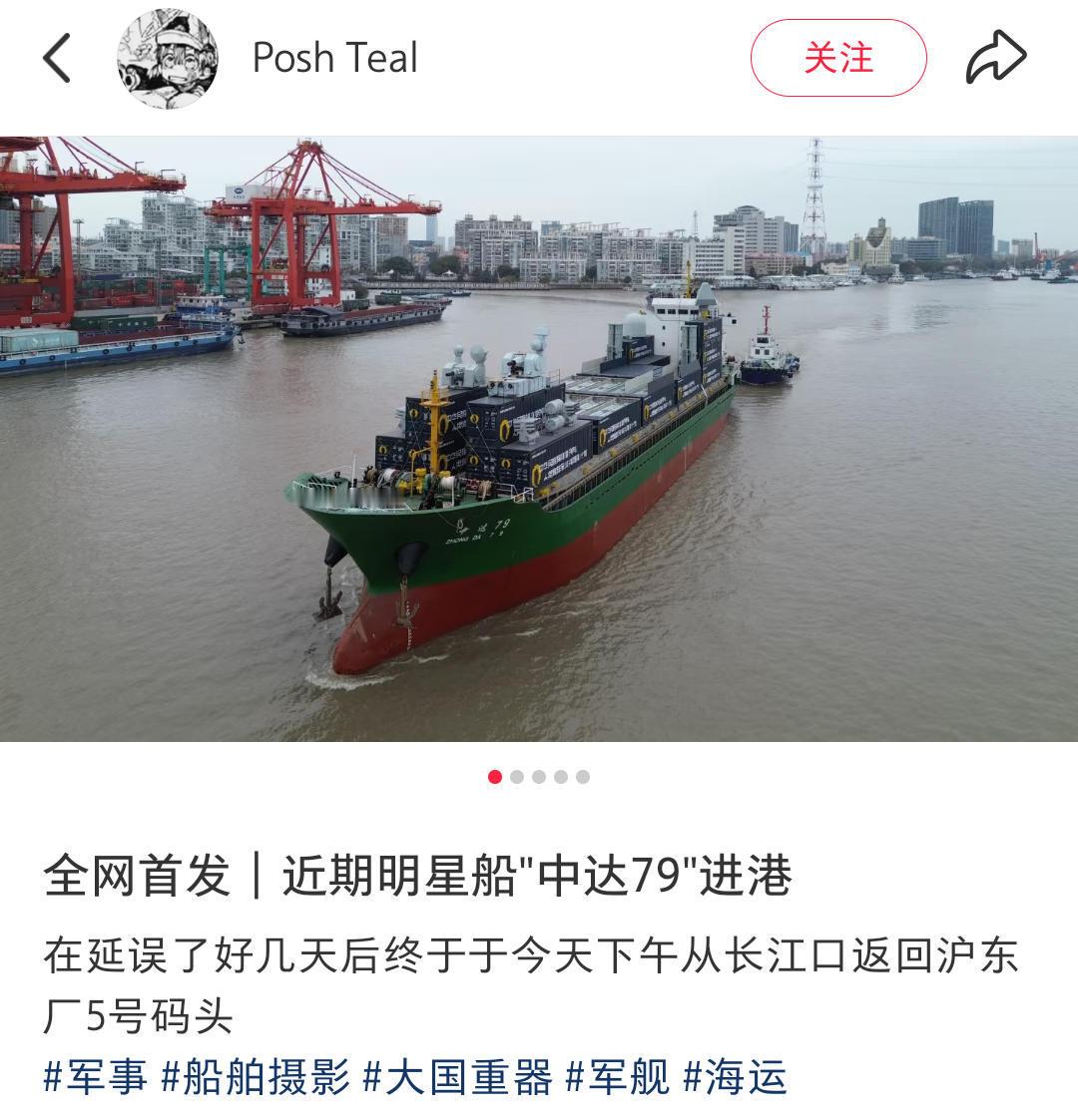 这火力也太强了,来瞅瞅试航归来的“民用火力支援舰”!网友(Posh Teal)拍摄的“中达79”号集装箱“货船”试航归来画面,可以看到该船的至少15个集装箱里面配备有导弹垂直发射筒,然后另外一些集装箱上面则是1130近防炮、雷达等武器设备。整体来看,该船的火力已经不弱于一艘052D驱逐舰了,怪不得被军迷称之为“民用火力支援舰”……烽火问鼎计划