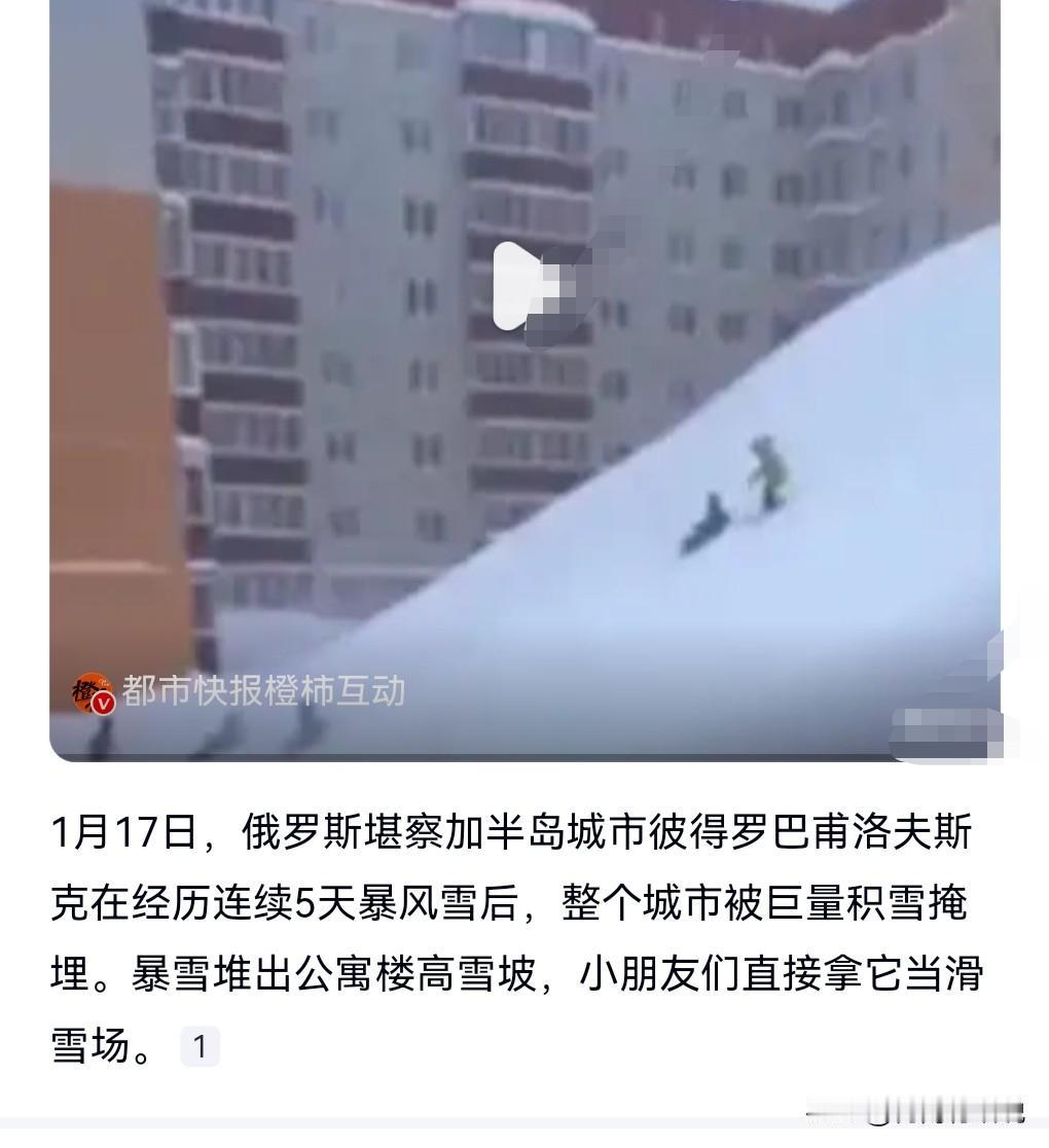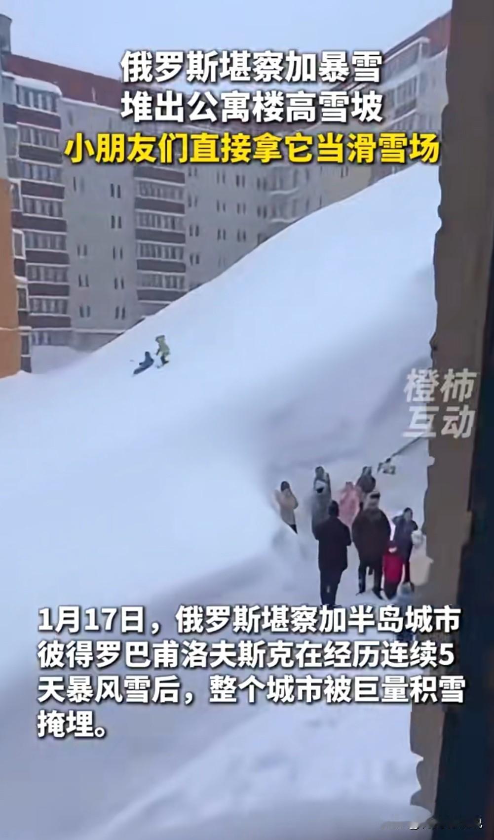 我的天呐,这雪也太大了吧,俄罗斯也太冷了吧。1月17日,俄罗斯一地暴雪堆出公寓楼高雪坡。 第1次在网上看到这样的场景,雪能够下这么深。 孩子们倒是感到非常的快乐,直接从上面滑下来。 湖南以前下雪挺多的,现在一年都下不了几场雪了。 还记得小时候后的雪能下到膝盖这么深。 现在是没有见过了。